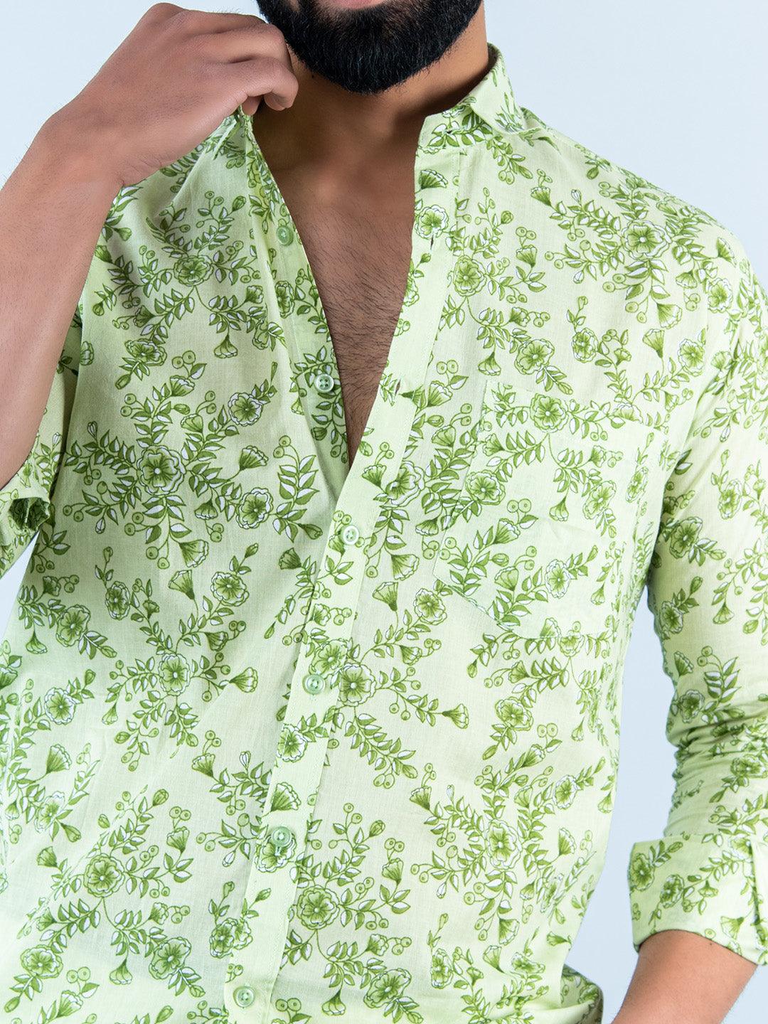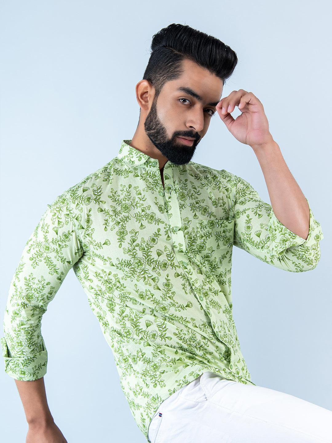 About The Product- This Tea Green Floral Printed Full Sleeves Cotton Shirt Is Truly Comfortable And Easy To Wear In Every Season. Enhance Your Look By Wearing This Shirt From Tistabene’s Collection.