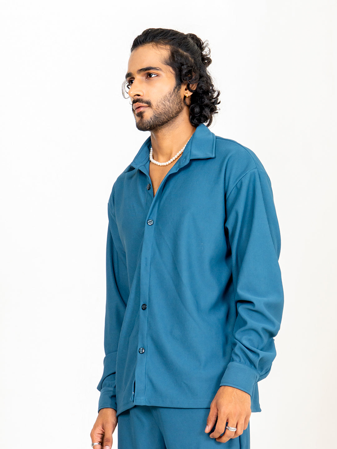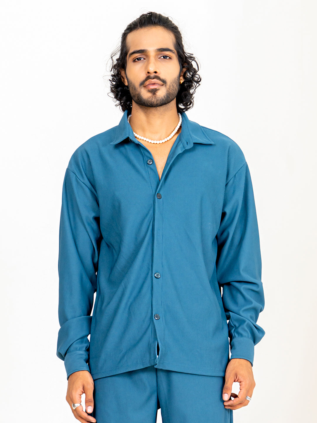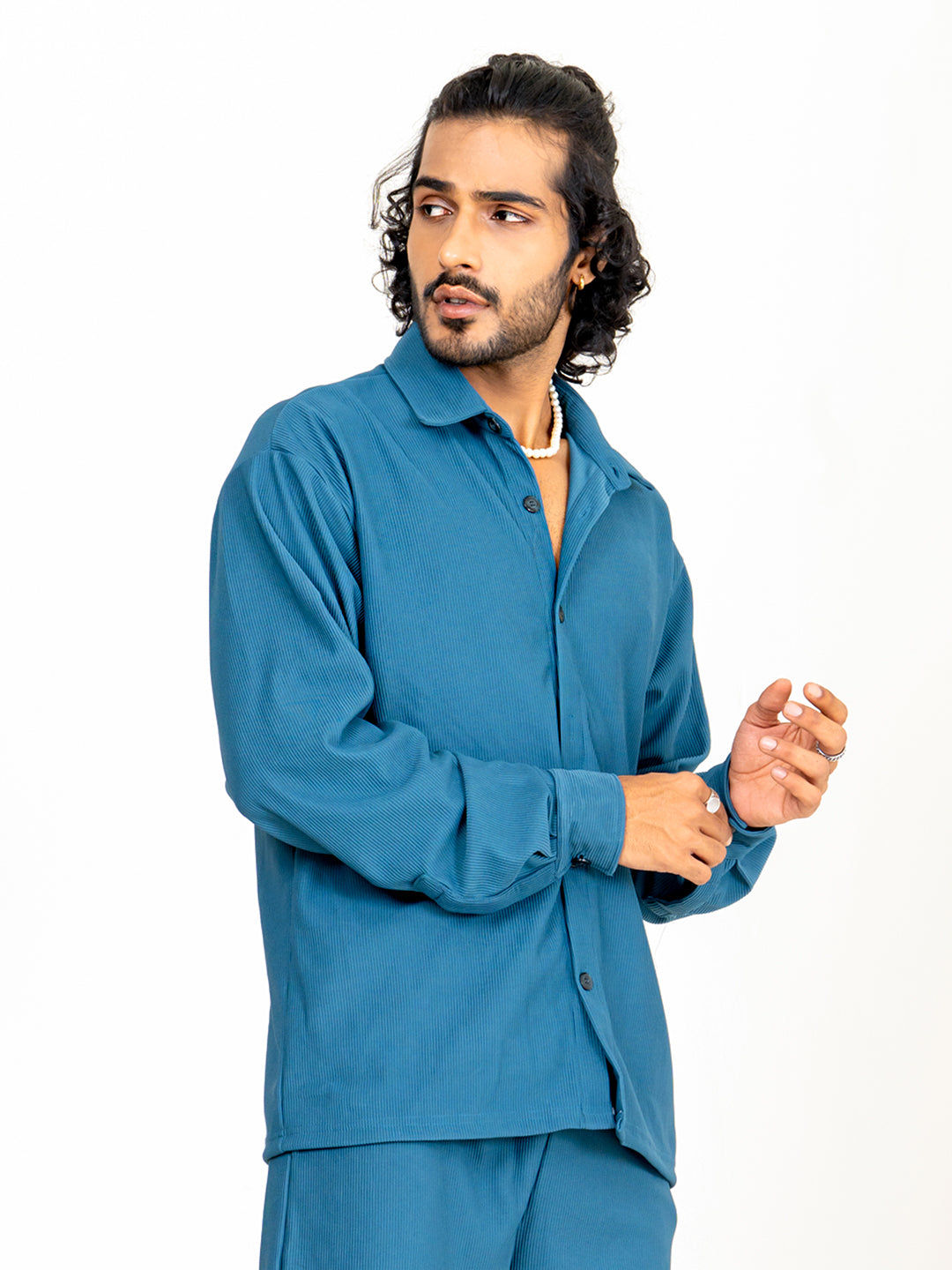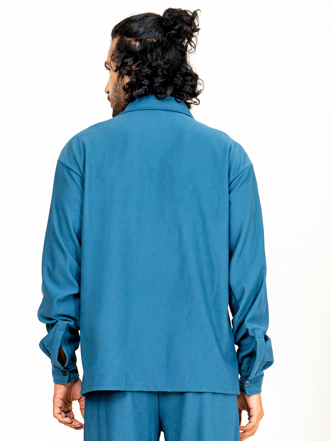 For a casual yet stylish look, pair this teal blue cord shirt with light jeans or chinos. Layer it under a jacket or wear it solo for a clean, minimalist vibe. You can also match it with the Teal Blue Cord Pants for a coordinated outfit.