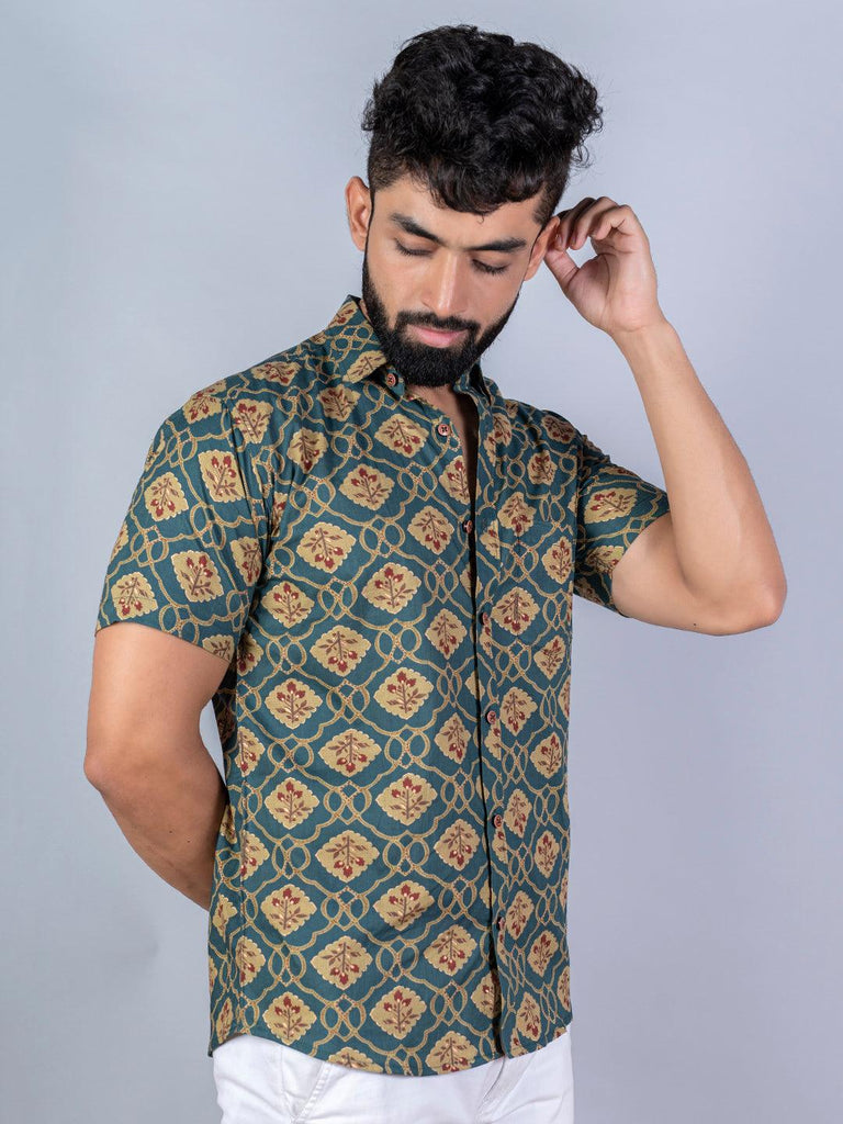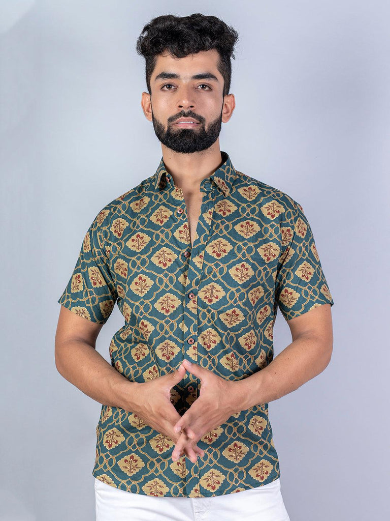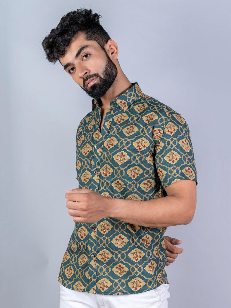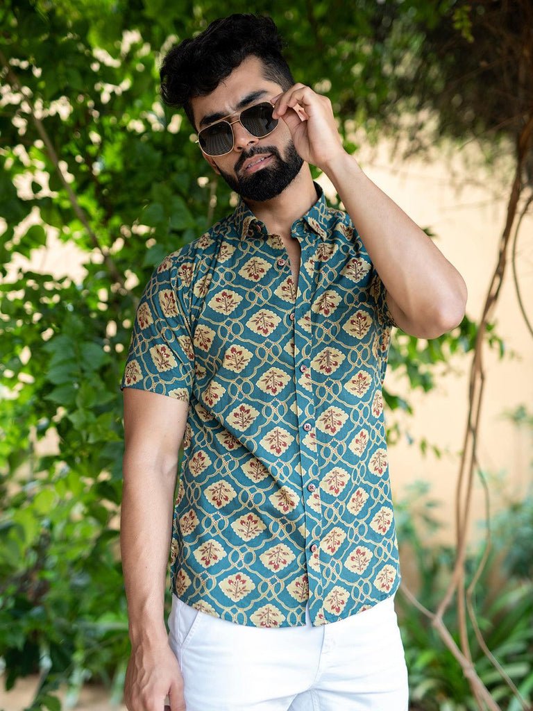 About the product: This teal blue floral printed half sleeves cotton shirt is made to make you look smart. This comfortable shirt is a must inside your wardrobe.