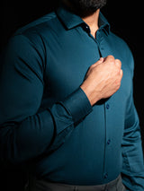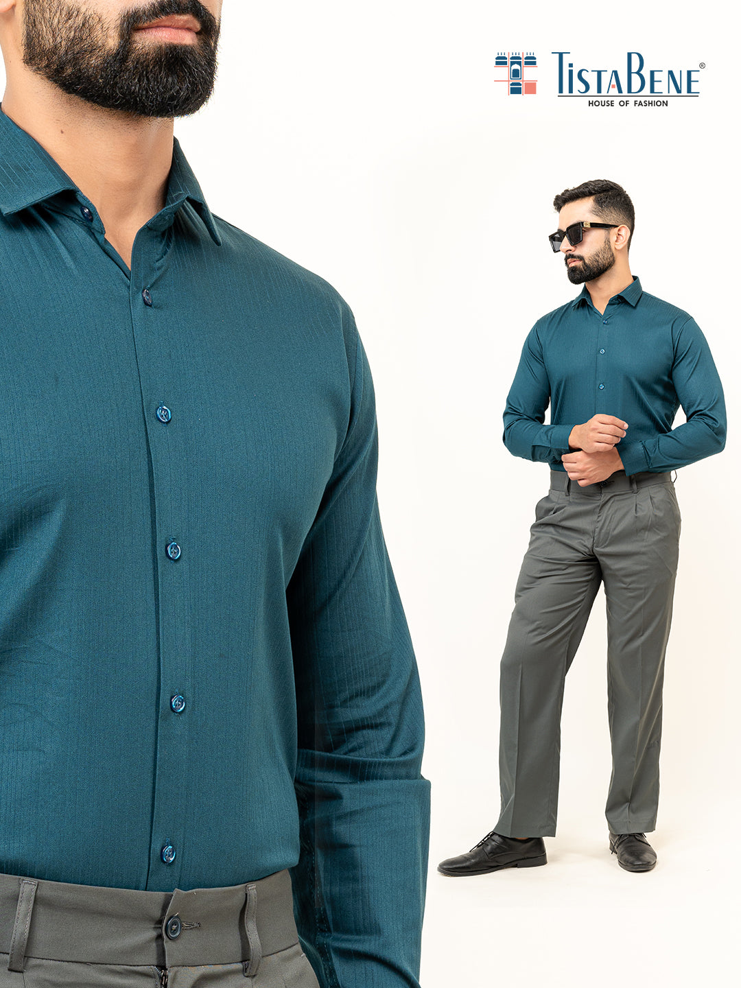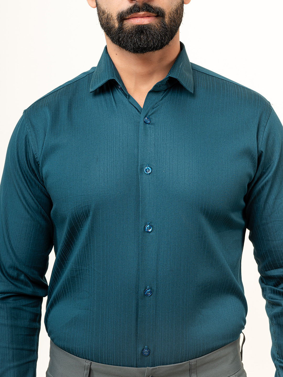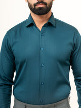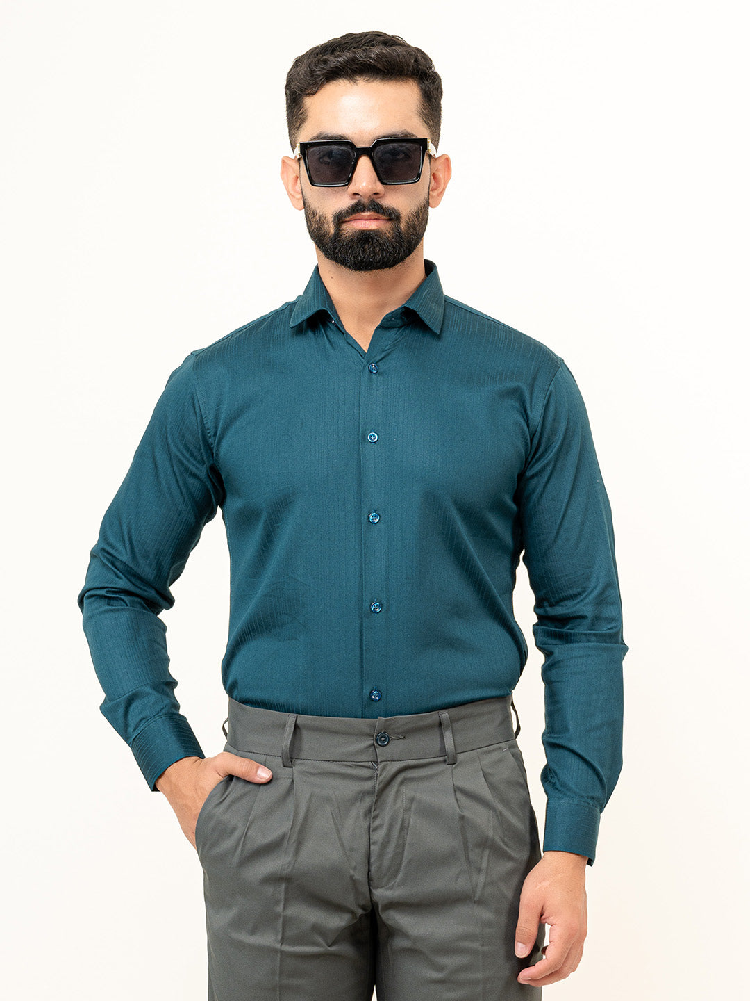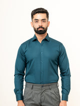 Enhance your wardrobe with the sleek and stylish Teal Blue Full Sleeve Solid Shirt. Its rich, deep hue exudes sophistication, making it a versatile pick for formal and semi-formal occasions.