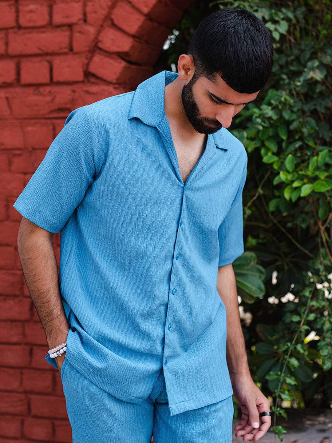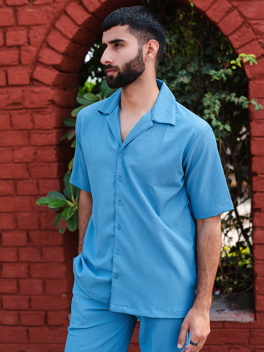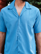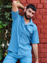 The Teal Blue Oversized Popcorn Texture Half Sleeves Shirt is perfect for a casual day out or brunch. It is very comfortable and keeps you relaxed.