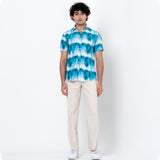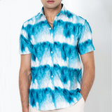 About Product- : Make a statement in this teal blue print shirt, an eye-catching piece for any occasion.