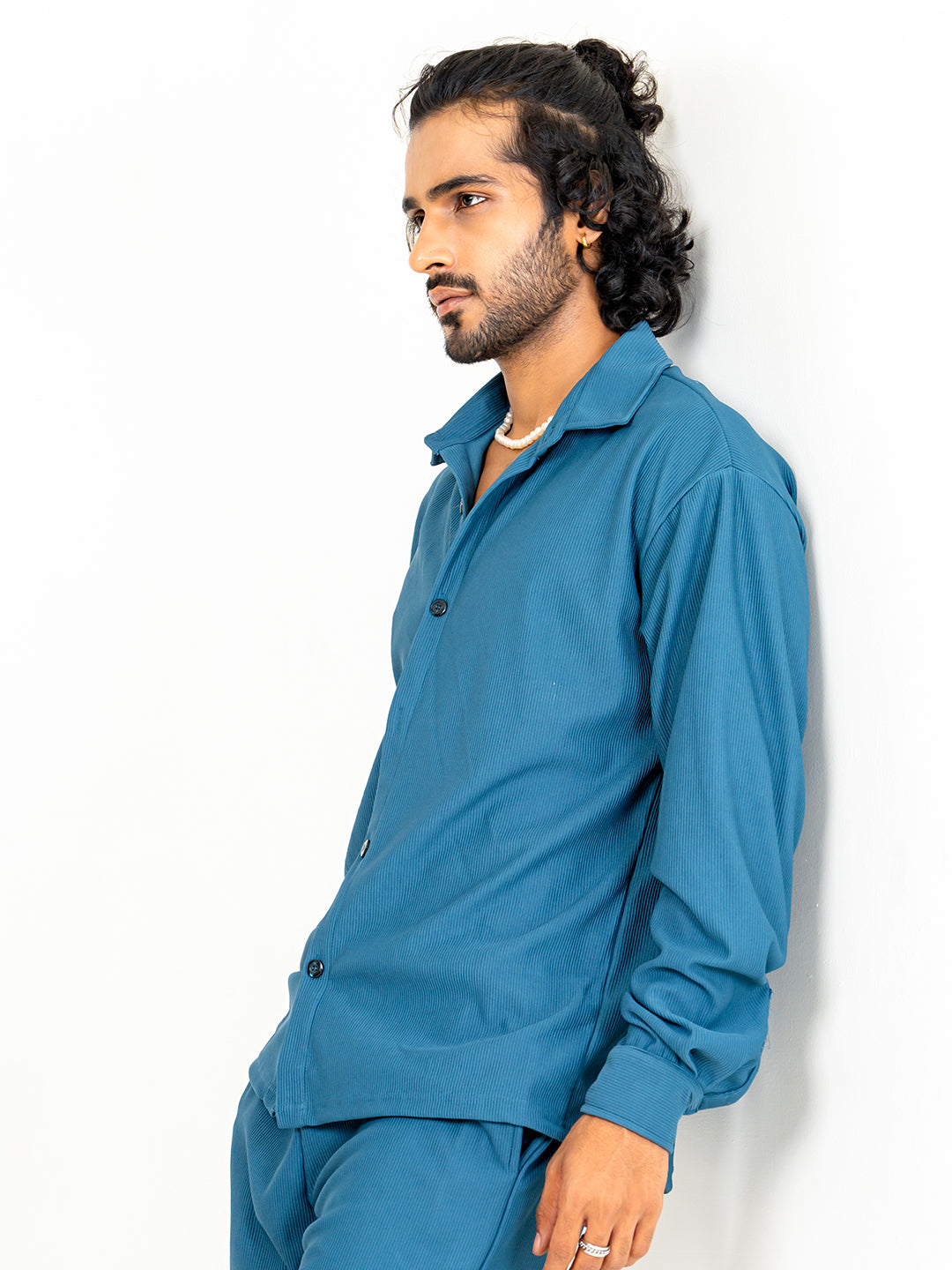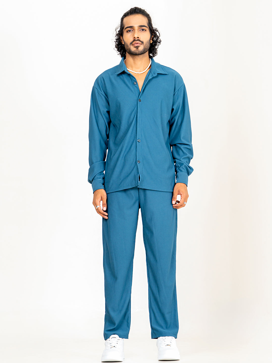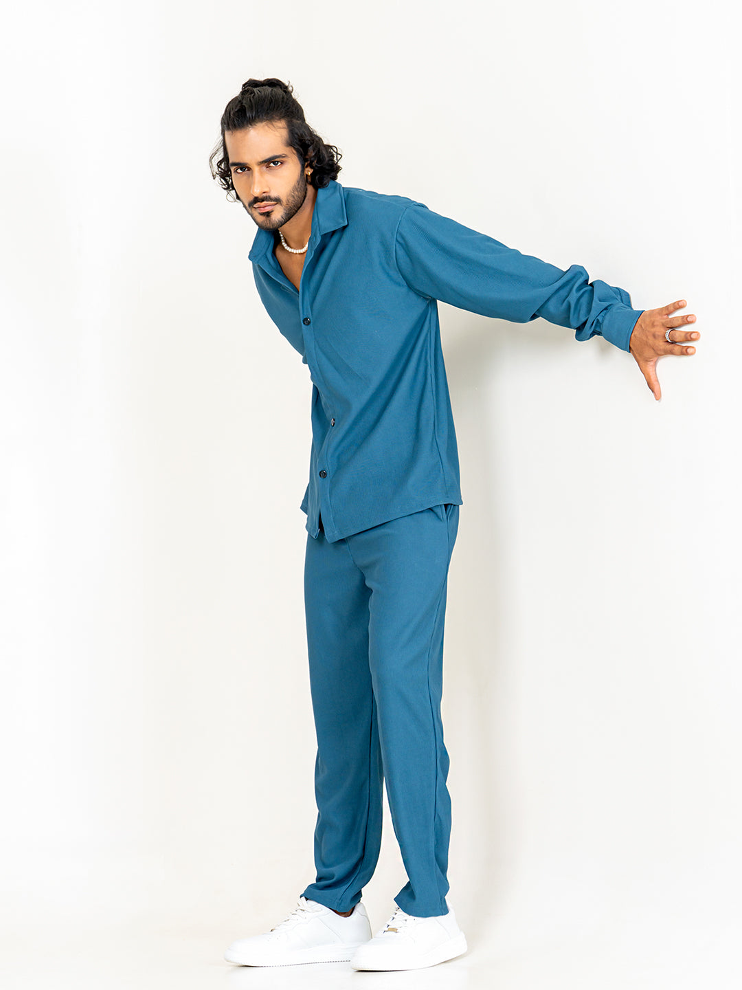 This Teal Blue Co-ord Set, made from soft, textured corduroy, combines style and comfort. Perfect for a coordinated look, the full-sleeve shirt and matching pants create an effortlessly stylish outfit.