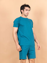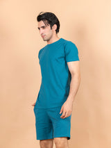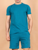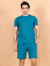 About the product- Teal Blue Solid T-Shirt and Shorts Men's Co-Ord Set is made of high quality cotton fabric for a comfortable day out!