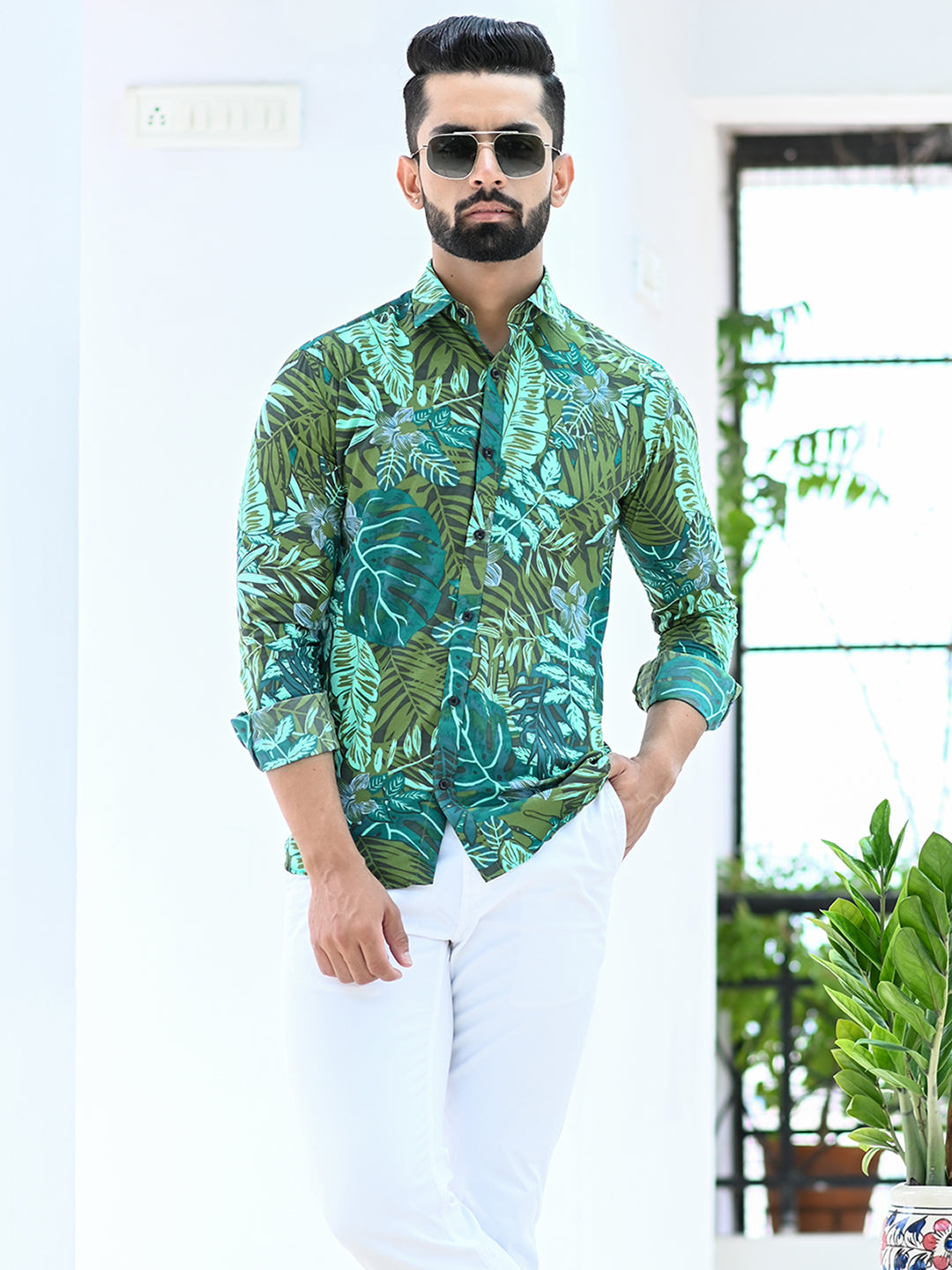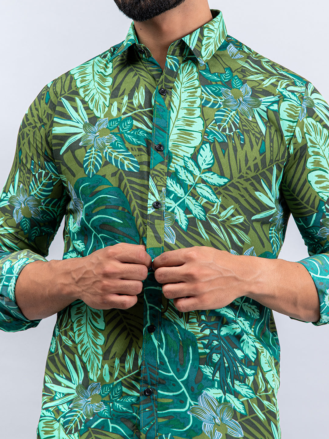 About the product: This tropic palm leaf printed full sleeve crepe shirt is made to make you look so stunning. This comfortable shirt should be a part of your wardrobe.