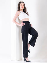 Description: Two Pocket Black Flared Jeans by Tarefaan. Crafted with the exquisite mastery that defines Tarefaan's legacy, these jeans stand as a testament to the harmonious marriage of style, comfort, and craftsmanship. Adaptable to various occasions, they seamlessly transition from formal to casual