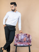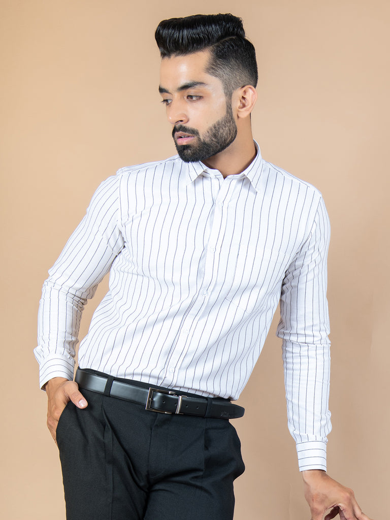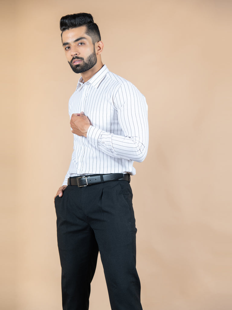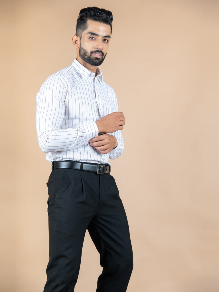 About the product: This White and Black Jacquard stripes Shirt is made to make you look smart and handsome. This shirt is so comfortable yet so stylish.