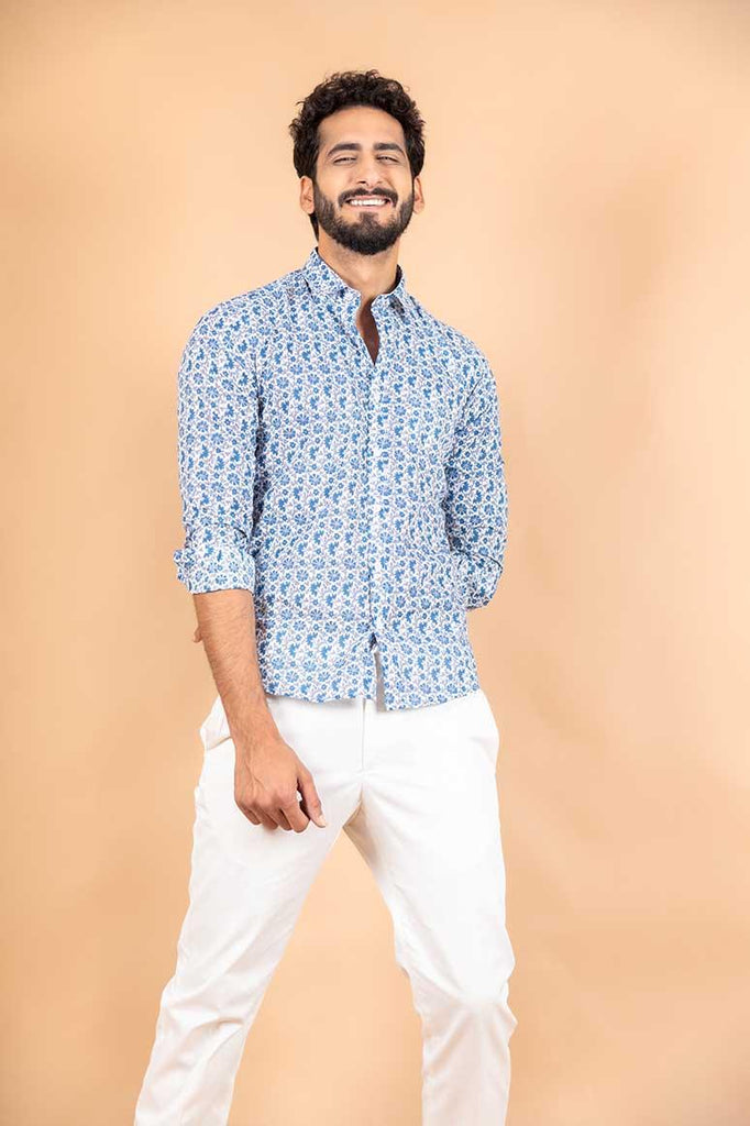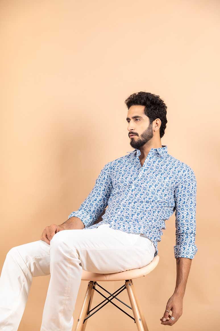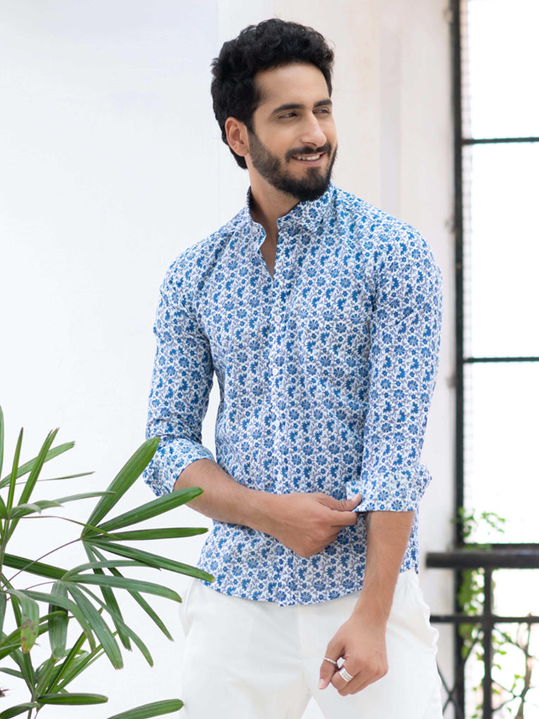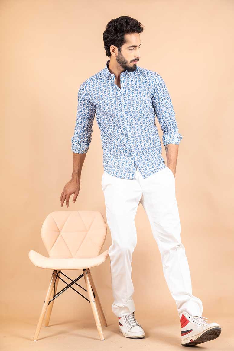 About The Product- White And Blue Florescence Cotton Printed Shirt Is Truly Comfortable And Easy To Wear In Every Season. Enhance Your Look By Wearing This Shirt From Tistabene’S Collection.