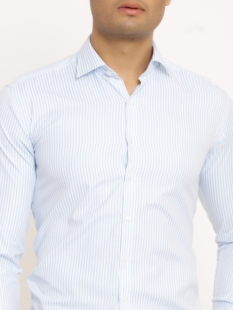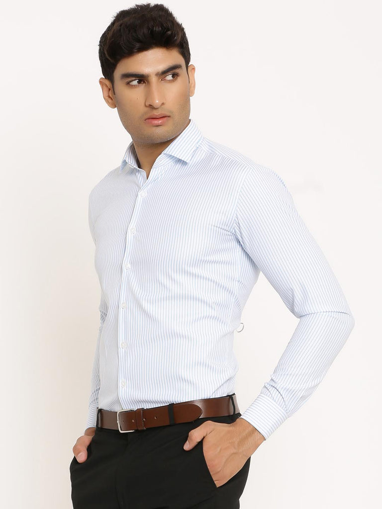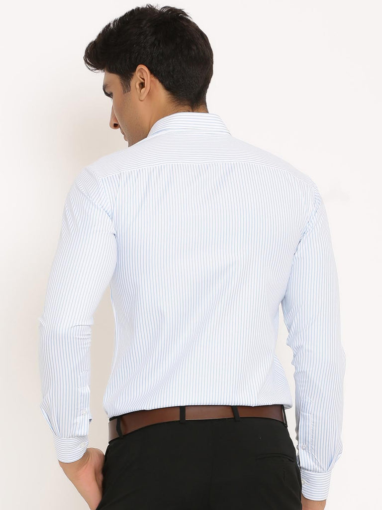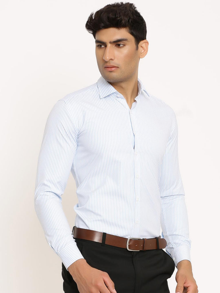 About the product: This White and Light Blue Formal Stripes Shirt is made to make you look smart and handsome. This shirt is so comfortable yet so stylish.