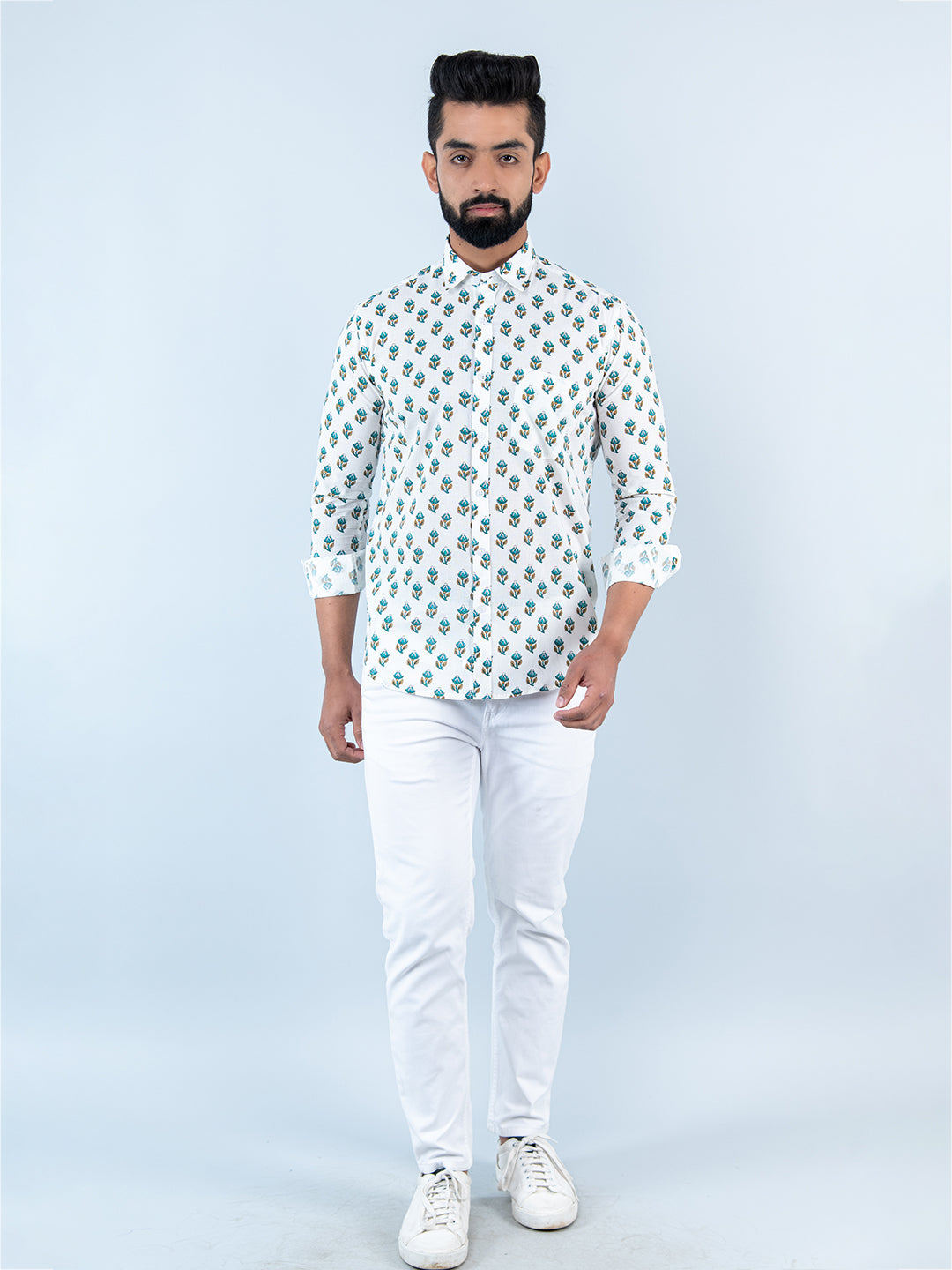 About The Product- This White Block Printed Full Sleeves Cotton Trending Shirt For Men Is Made To Make You Look Stunning And Suitable For Every Style And Season.