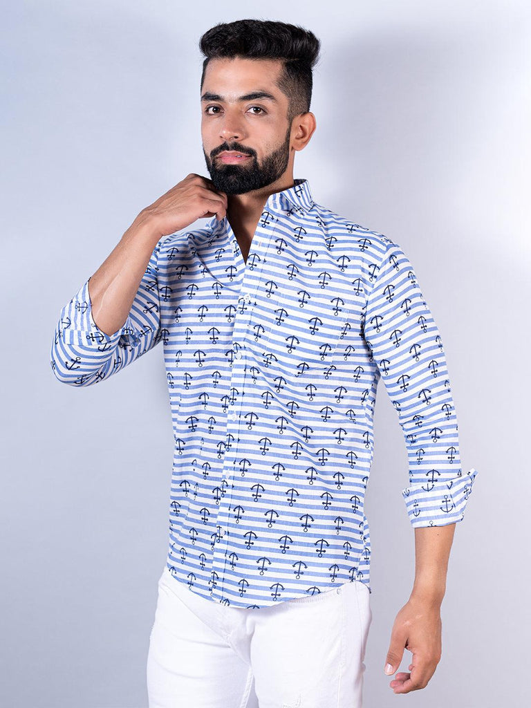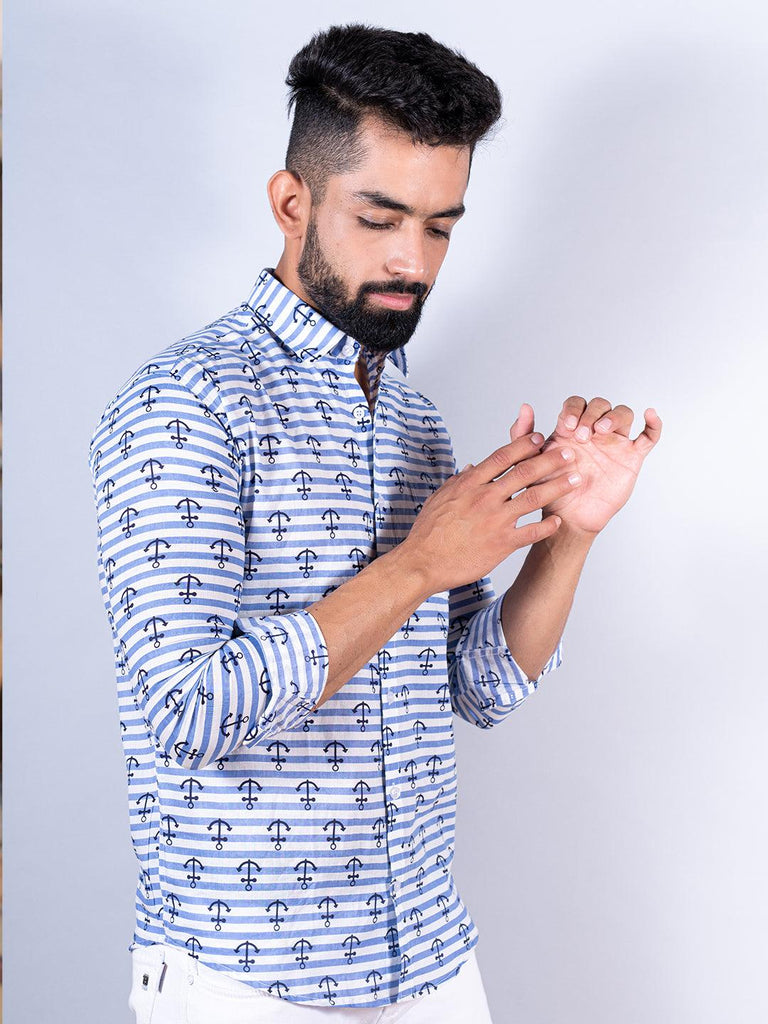 About the product: This white & blue anchor printed full sleeves cotton shirt is made to make you look smart. This comfortable shirt is a must inside your wardrobe.