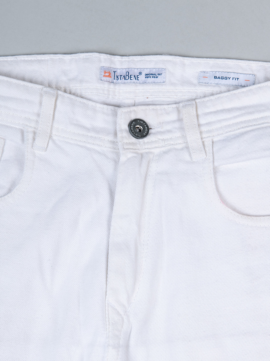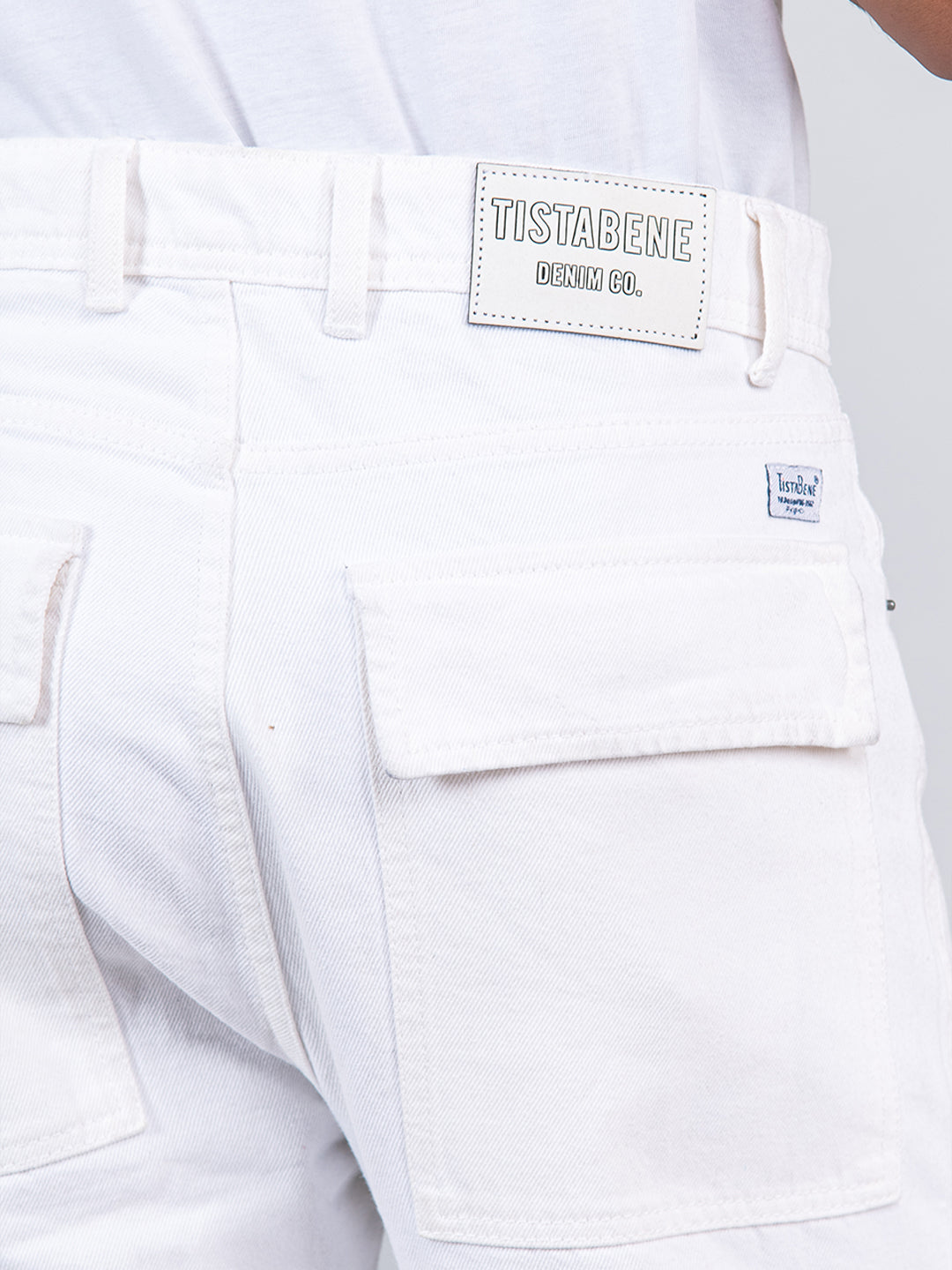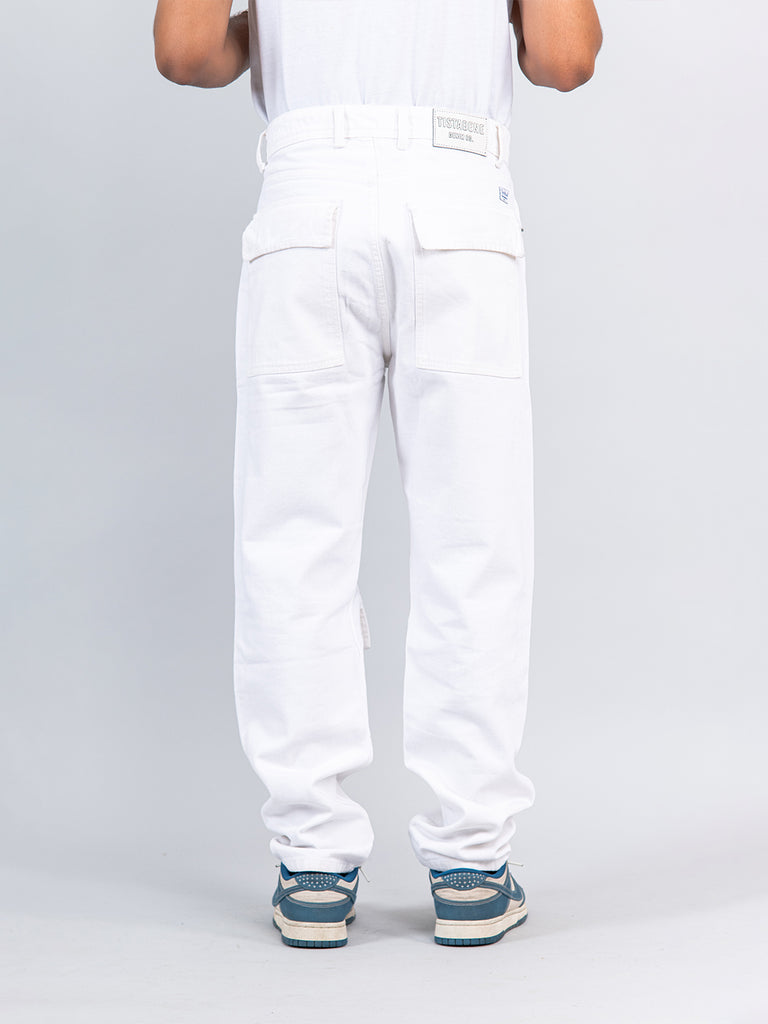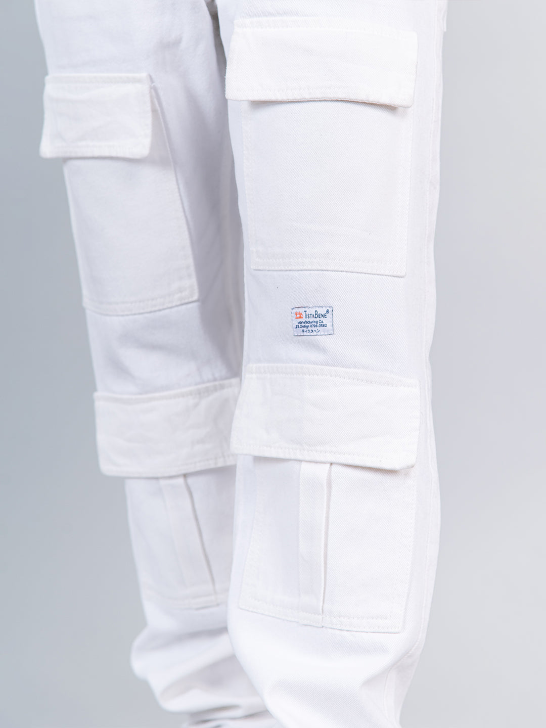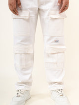 Our White Cargo Baggy Fit Denim Jeans will elevate your look. A stylish yet practical piece of modern essentials with cargo pockets for added comfort.