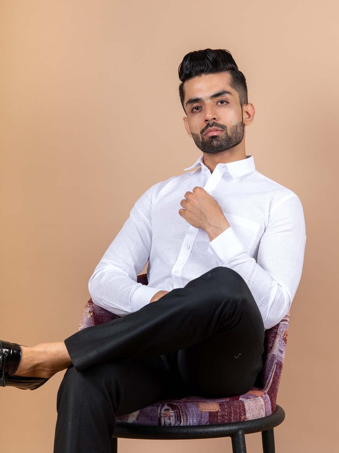 About Product- White Linen Shirt made for formal looks, 100% comfortable and feels soft and smooth on the skin.