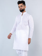 About the product- This White Diamond Embroidered Cotton Mens Kurta is lightweight and comfortable. This full sleeve kurta is all set to take your style to the next level.