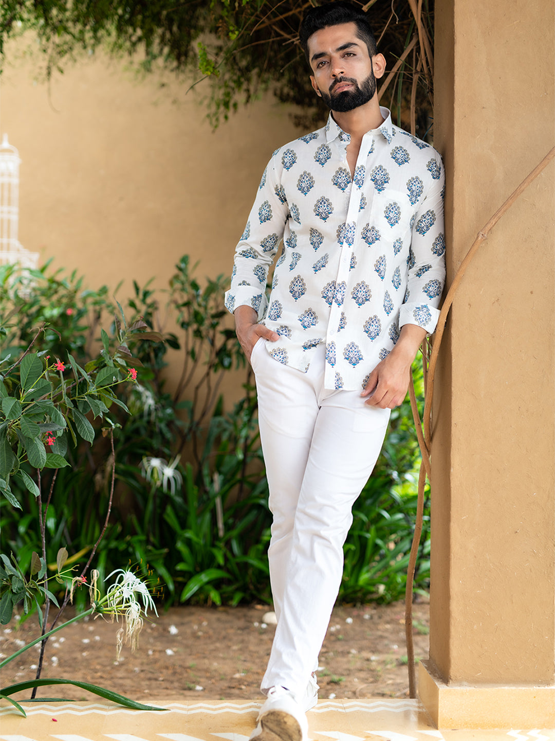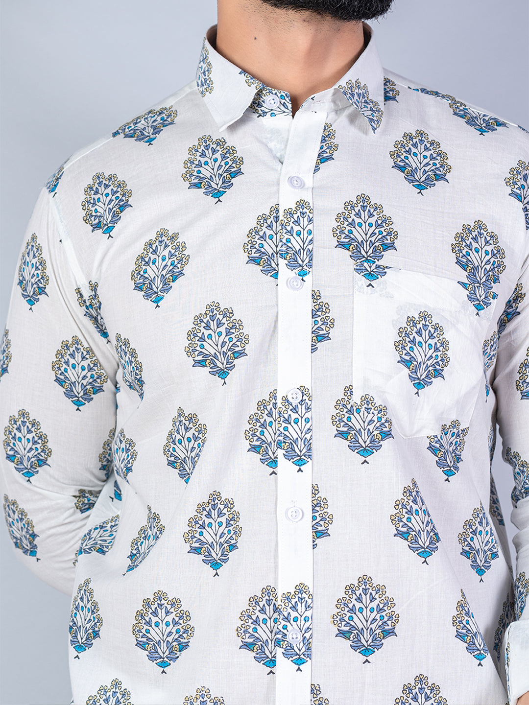 About the product: This white floral printed full sleeves cotton shirt is made to make you look smart. This comfortable shirt is a must inside your wardrobe.