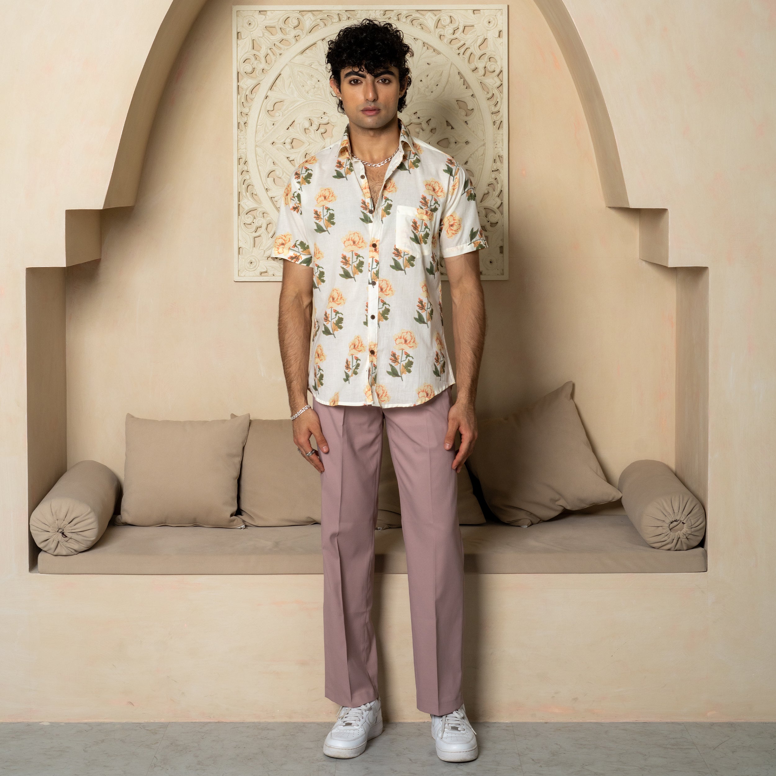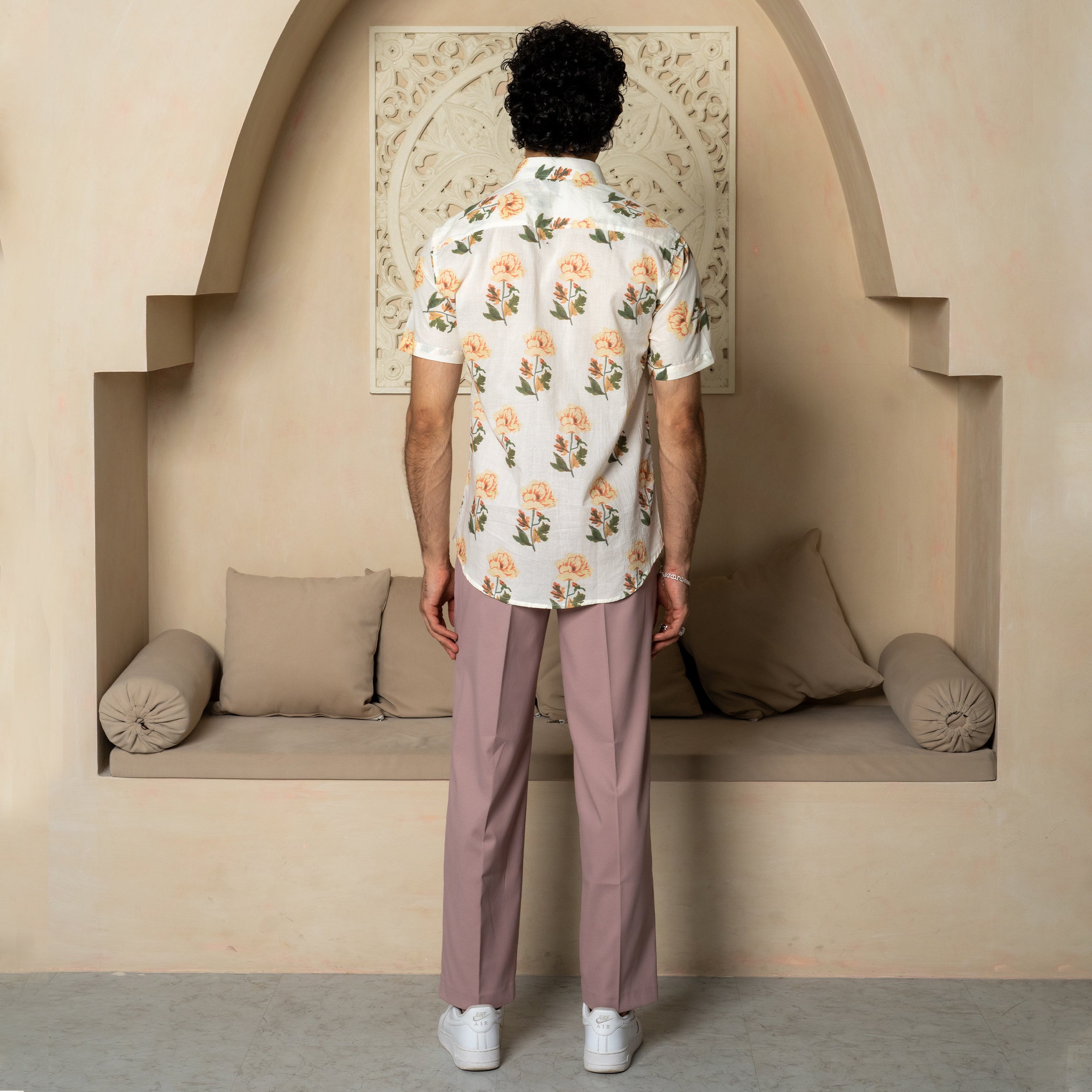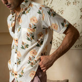 About Product- : Bloom with simplicity in this white floral half-sleeve printed shirt, a breath of fresh air for any wardrobe.