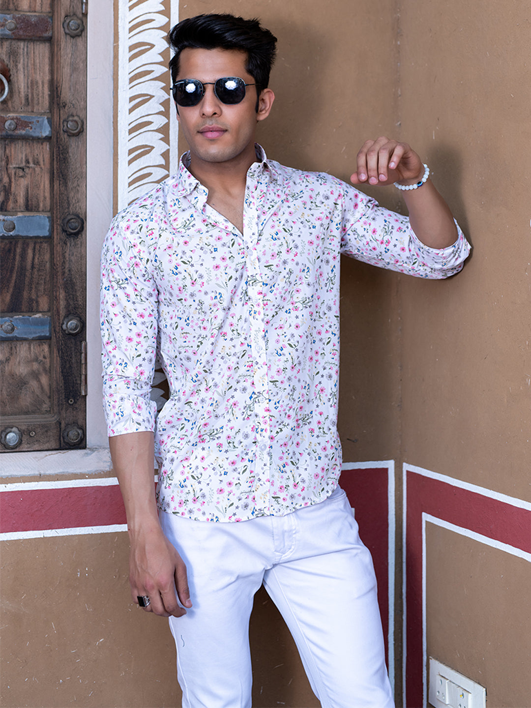 About the product- This White Floral Printed Full Sleeves Crepe Shirt is made to make you look smart, this comfortable shirt is your wardrobe essential which gives a stunning look while wearing.