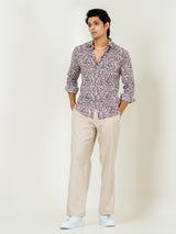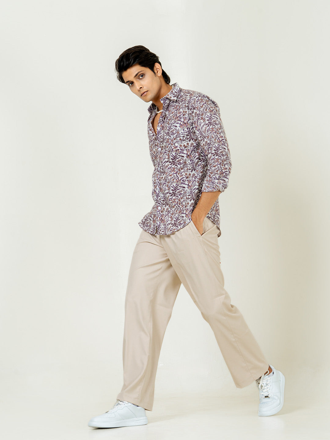 Pair this Sanganeri printed shirt with dark-colored chinos or jeans for a modern, polished look. It works well with casual loafers or traditional sandals, offering versatility for both casual and semi-formal settings. Add a wristwatch or a simple accessory to elevate the look without overpowering the design.