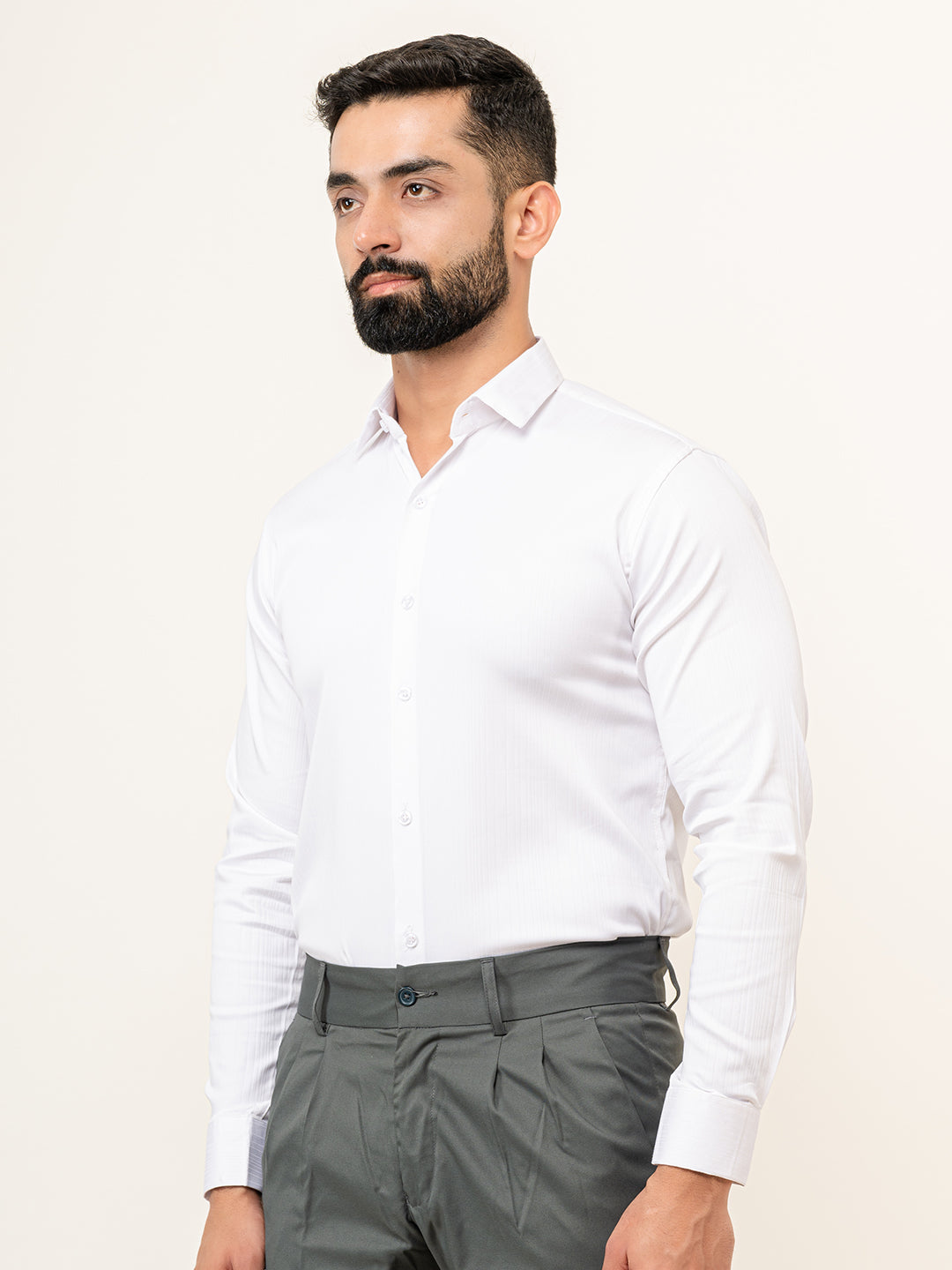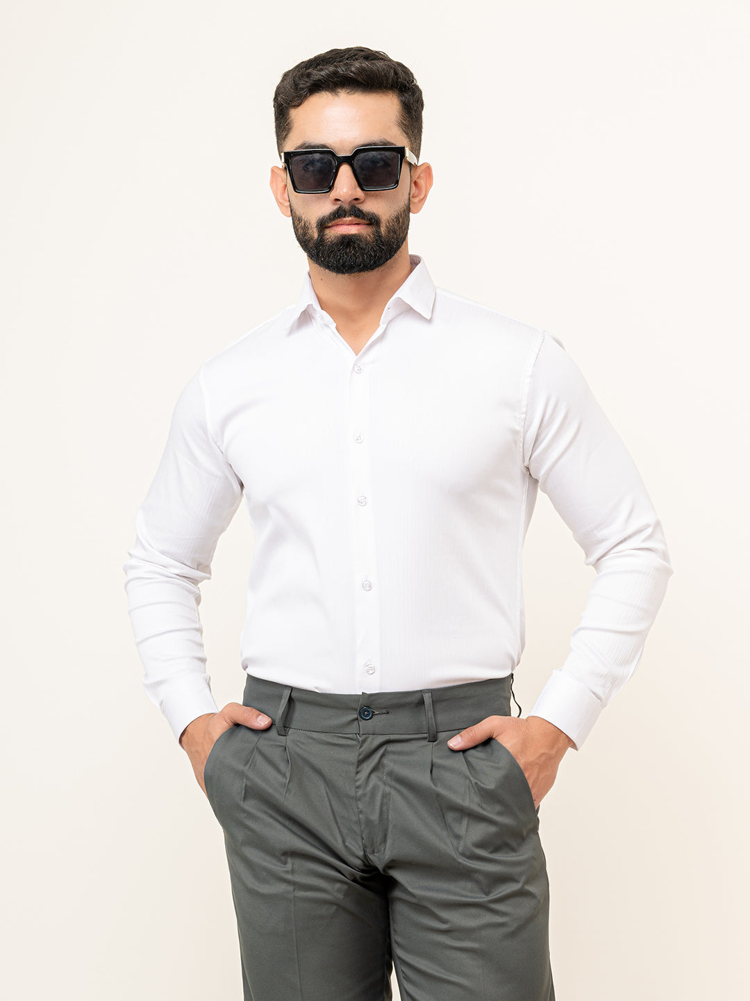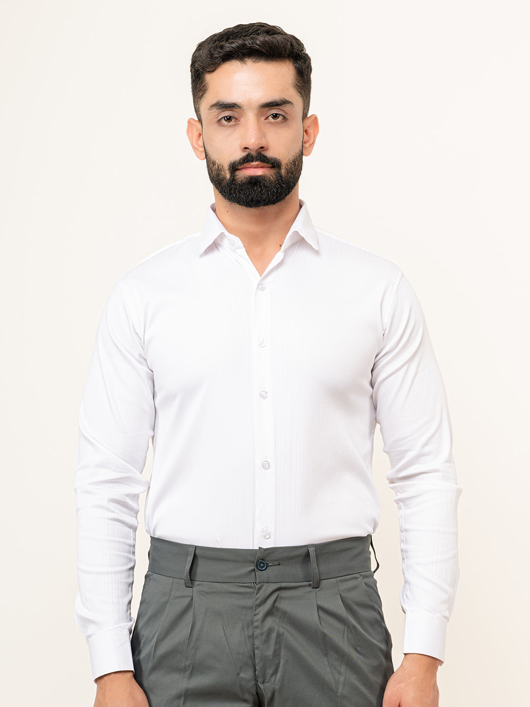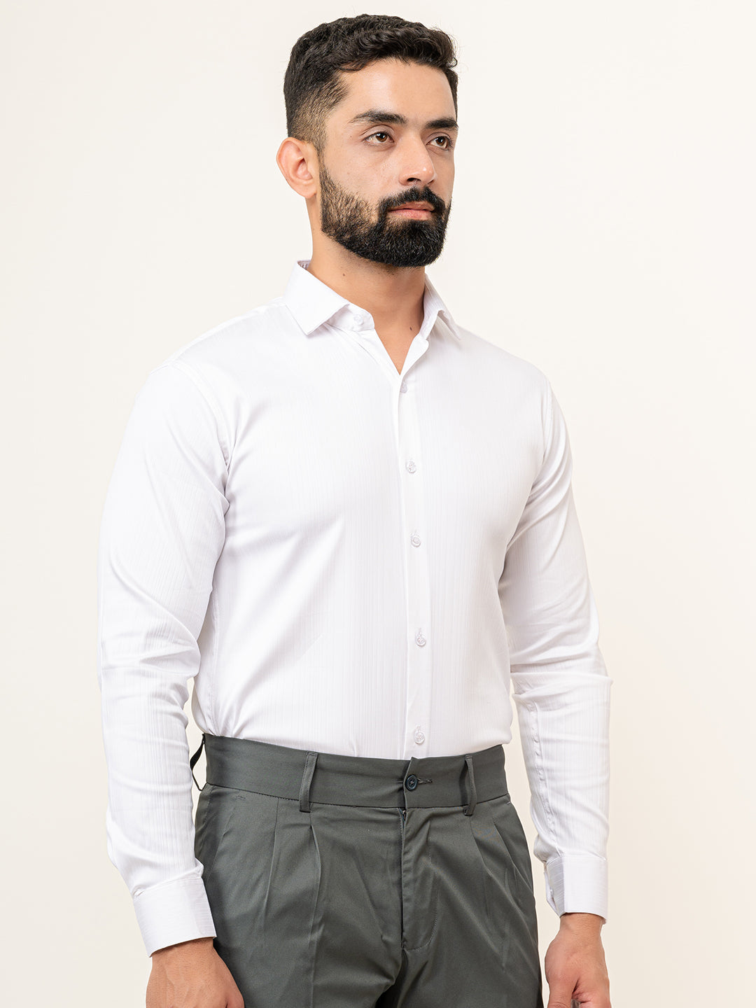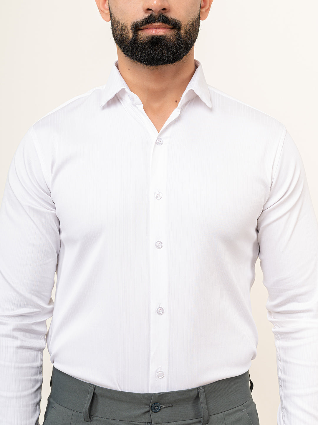 Enhance your wardrobe with the sleek and stylish White Full Sleeve Solid Shirt. Its rich, deep hue exudes sophistication, making it a versatile pick for formal and semi-formal occasions.