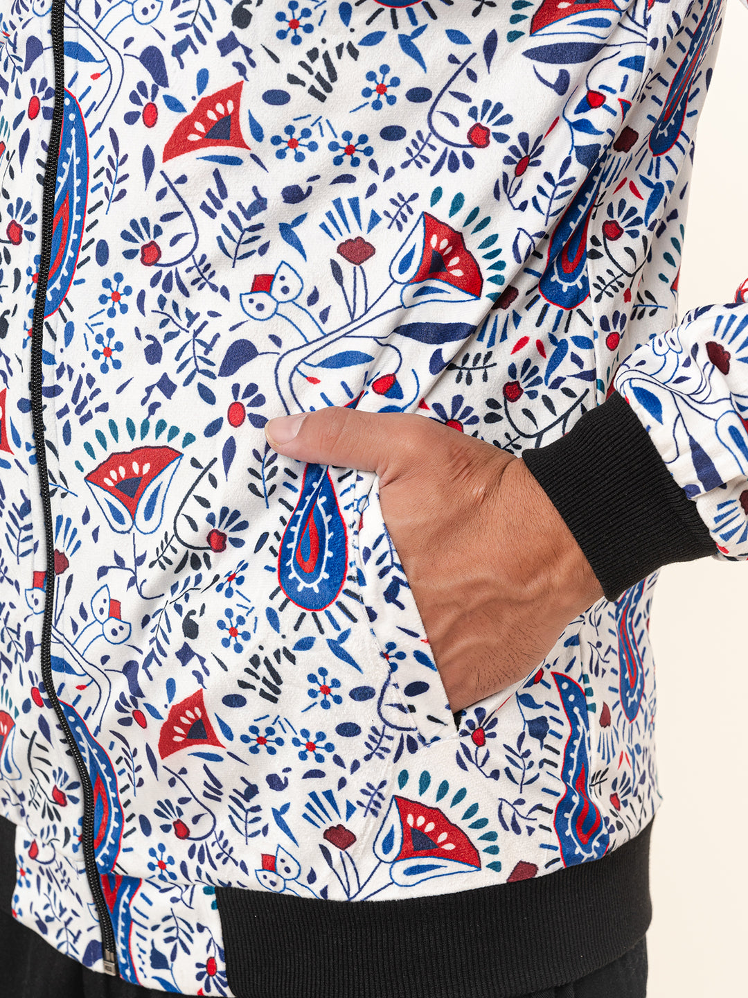 This White Paisley Printed Velvet Jacket is a perfect combination of modern style and traditional design. The material used is very comfortable and high-quality fabric, the right addition to your winter wardrobe.