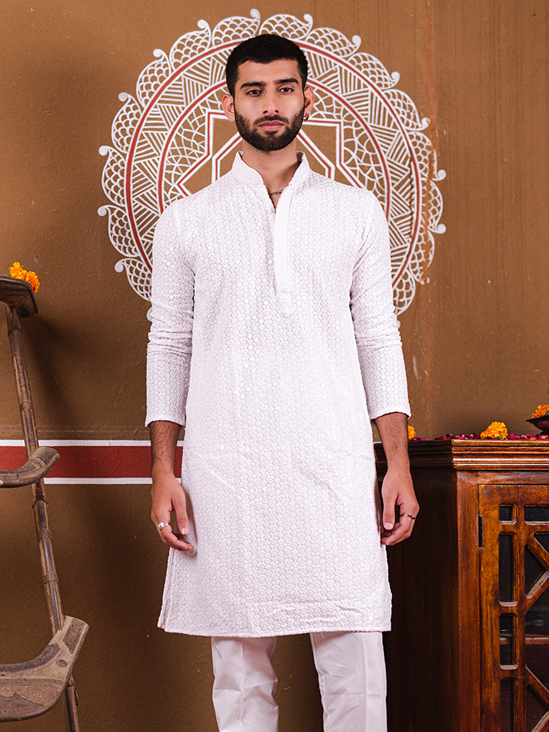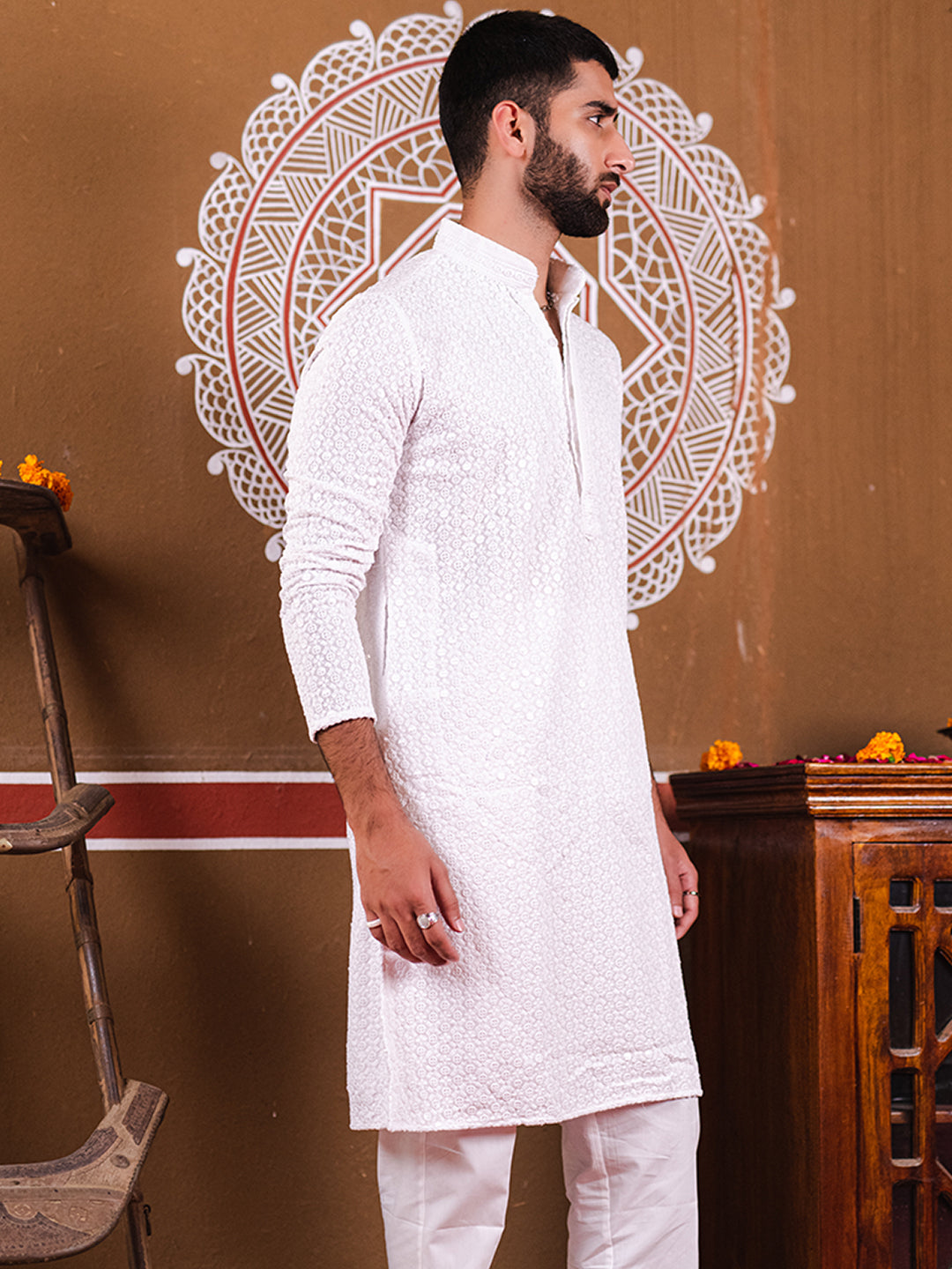 Style Note- White and White combination can give your attire a subtle and classy look!