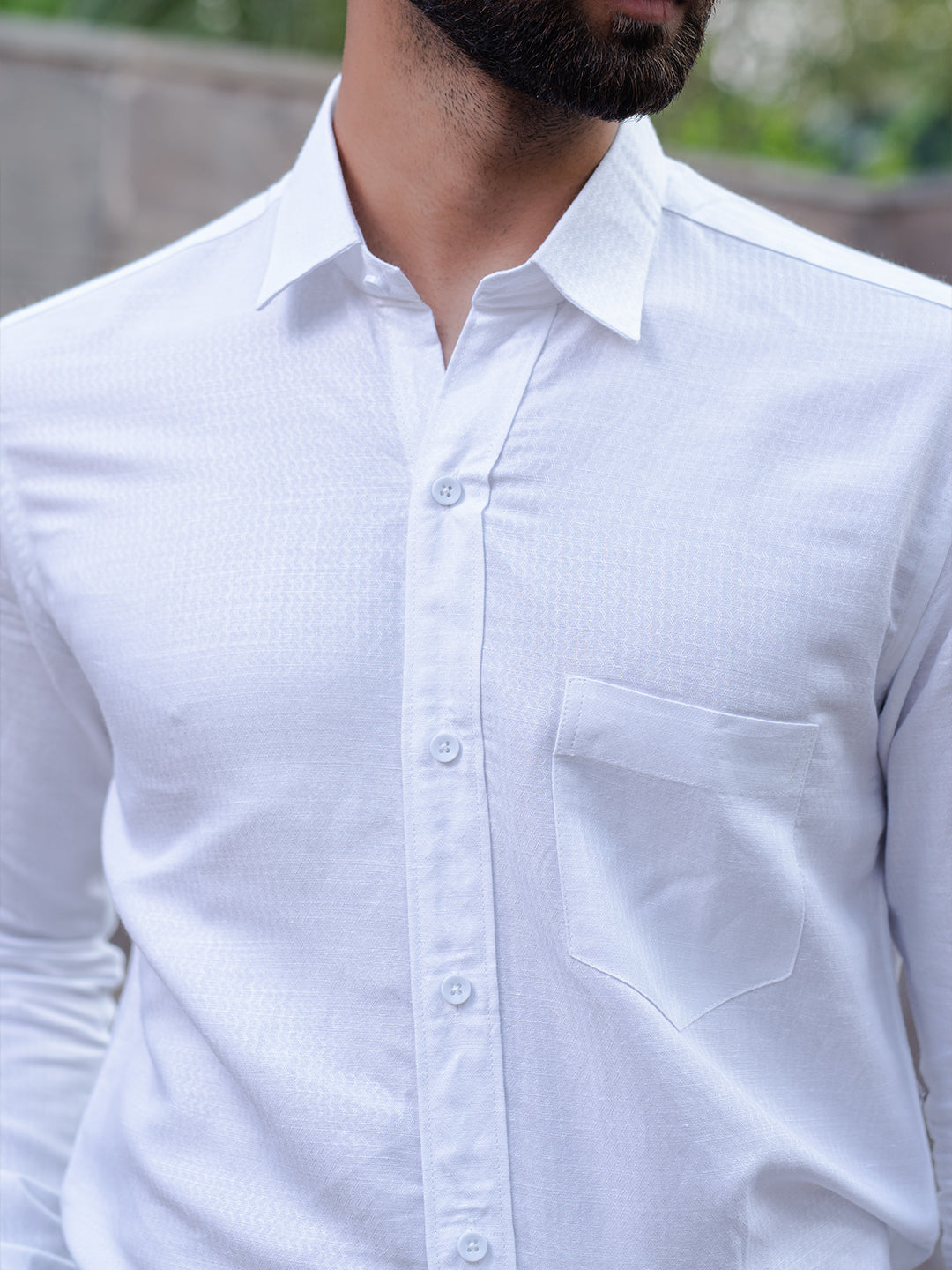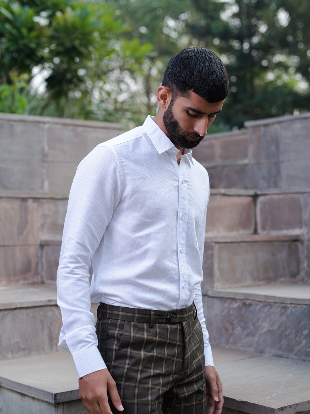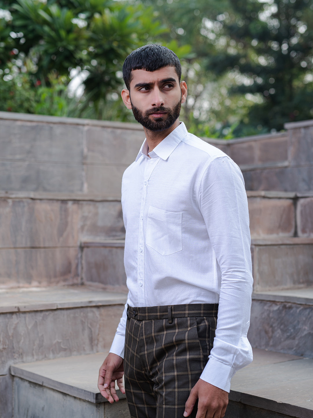 For a classy formal look, go for the White Texture Full Sleeves Giza Cotton Shirt. This shirt keeps your comfortable throughout the day without compromising on style.