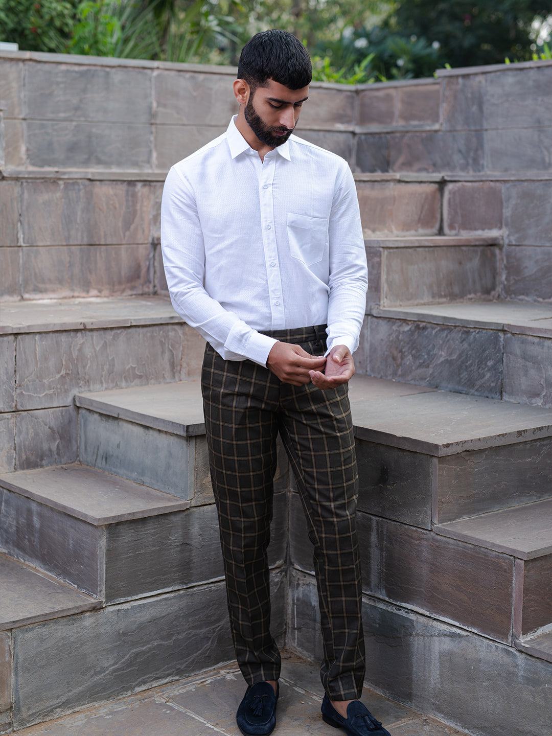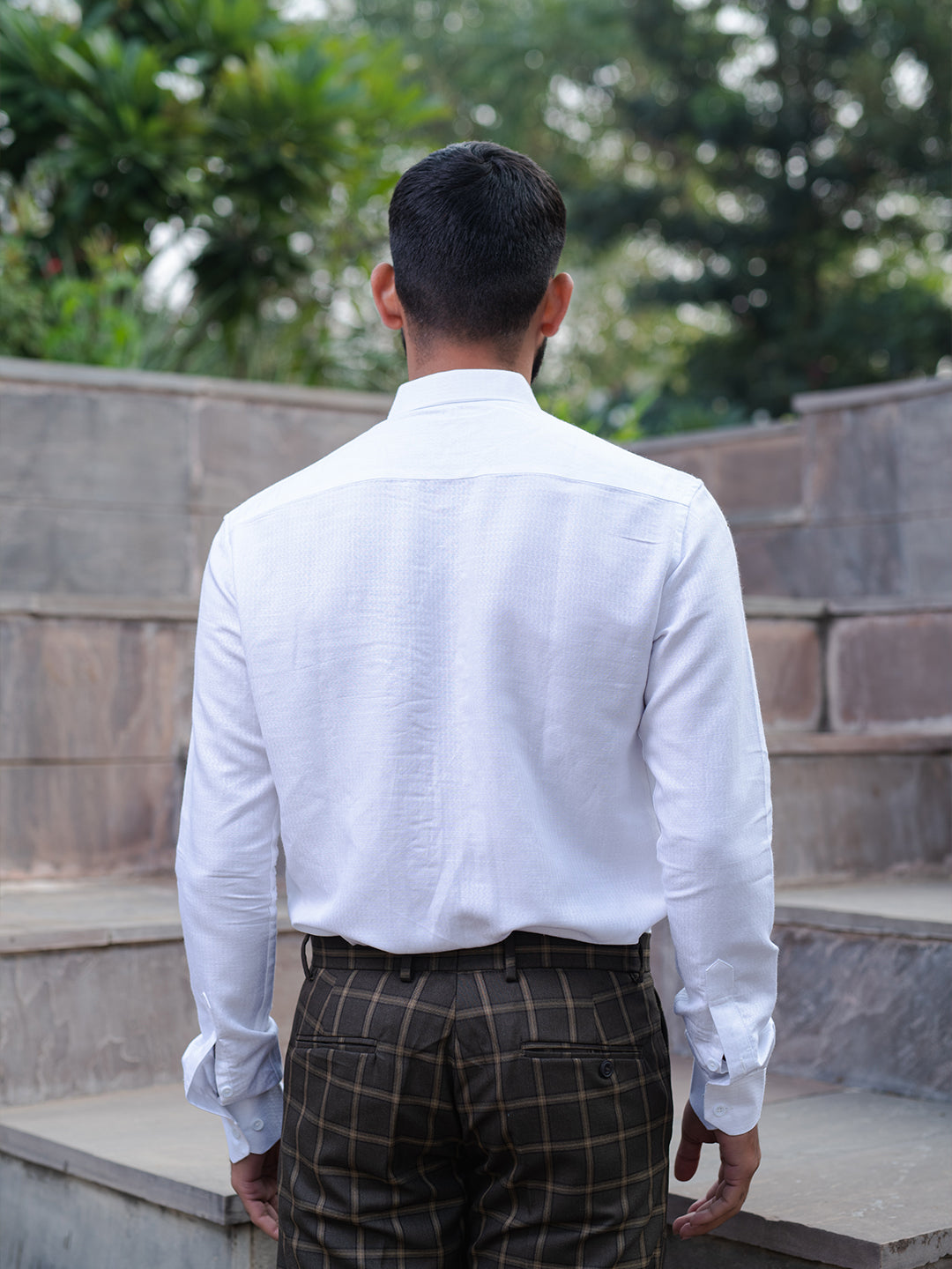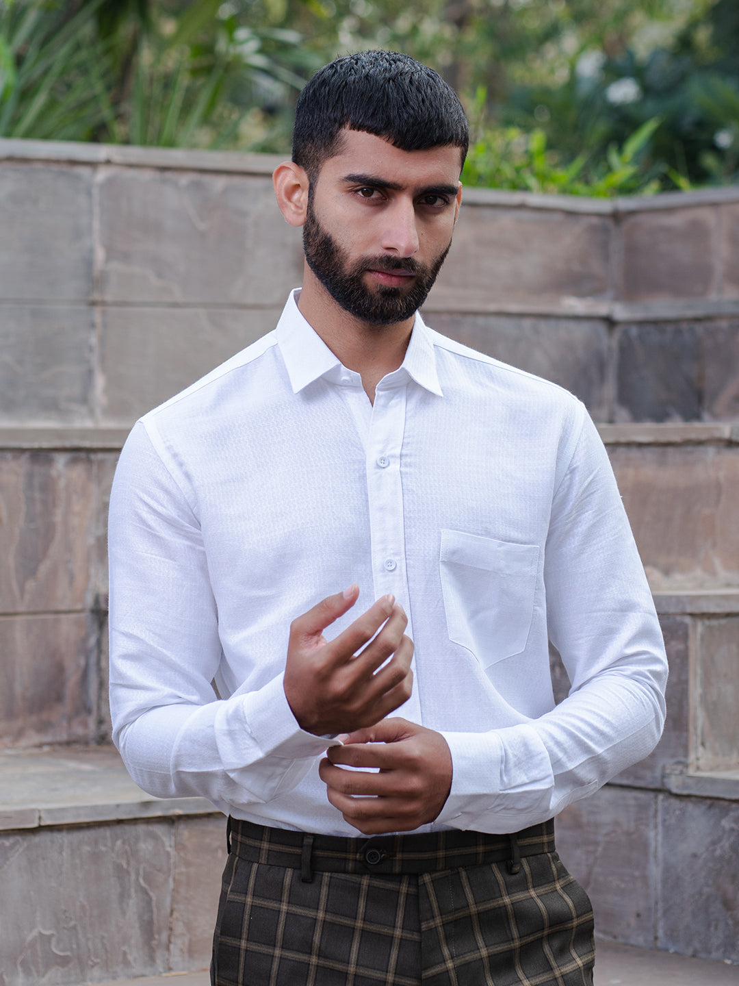 For a classy formal look, go for the White Texture Full Sleeves Giza Cotton Shirt. This shirt keeps your comfortable throughout the day without compromising on style.