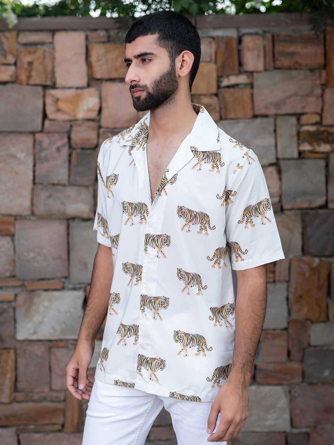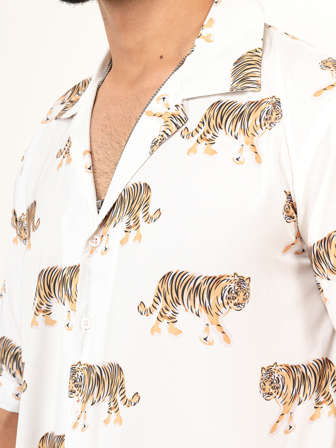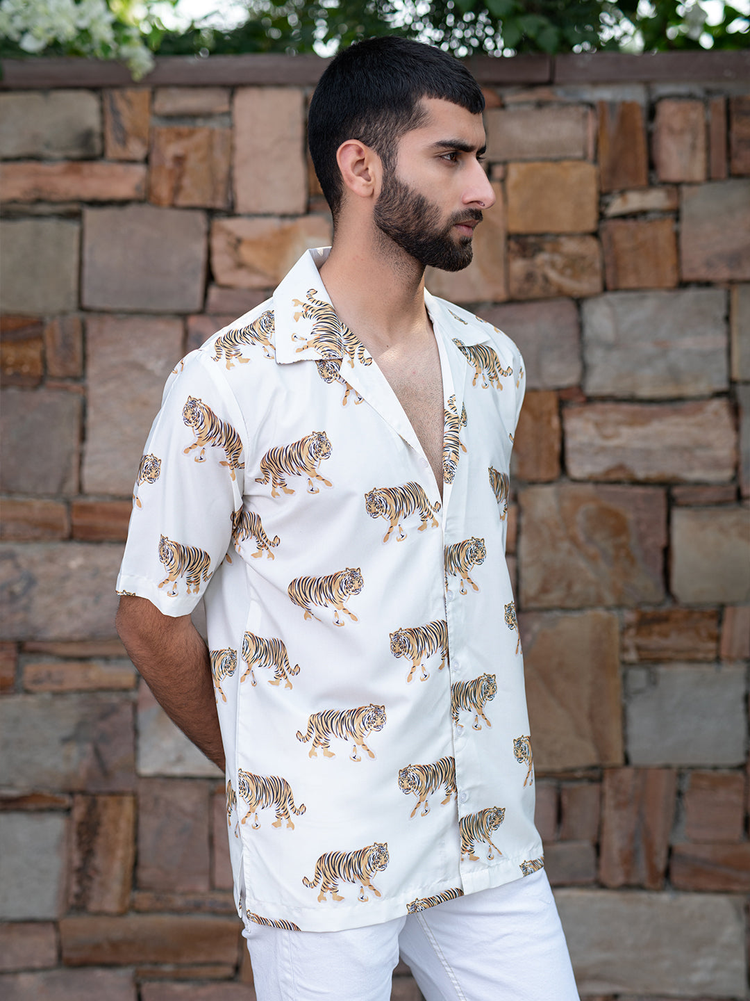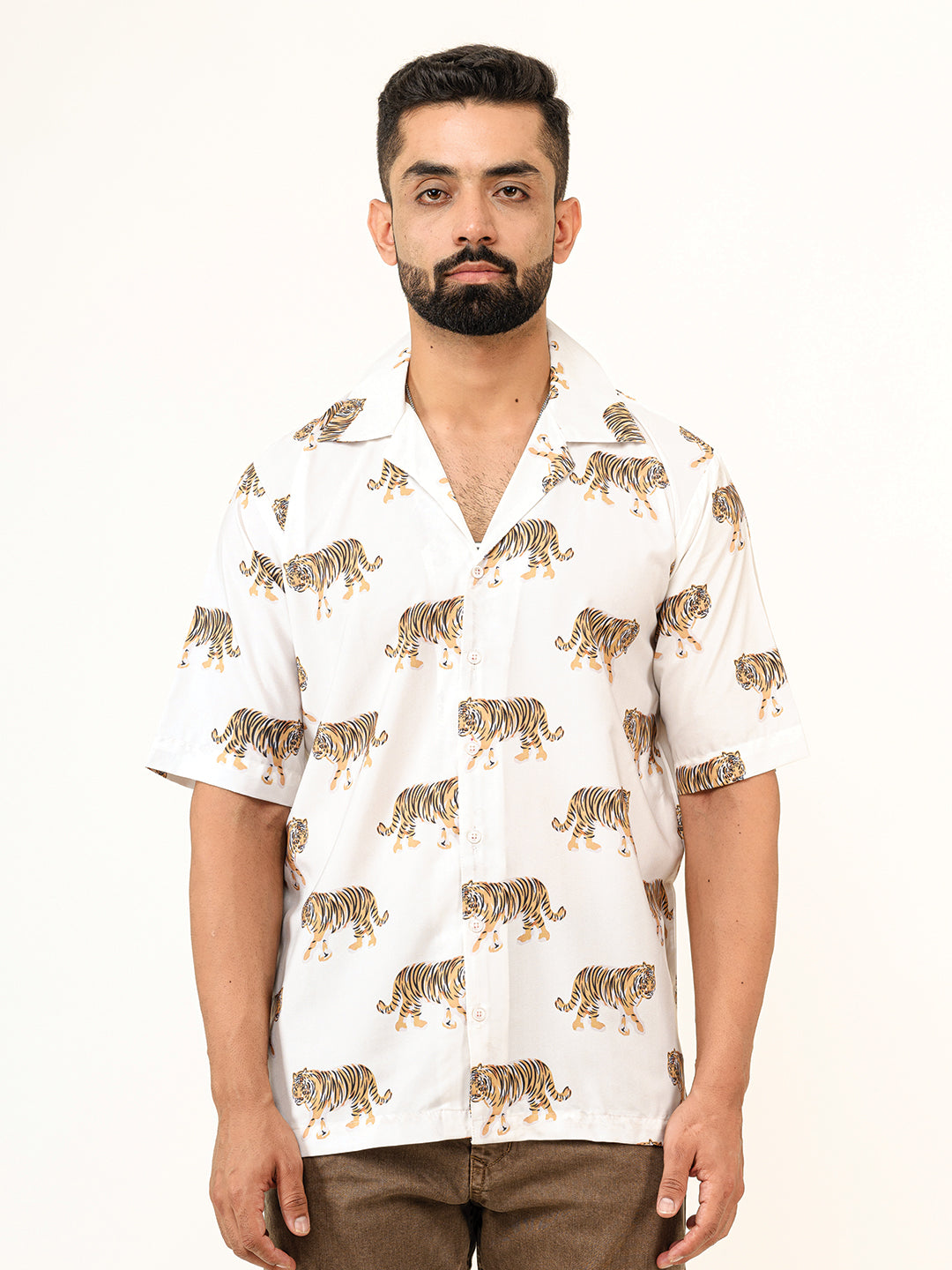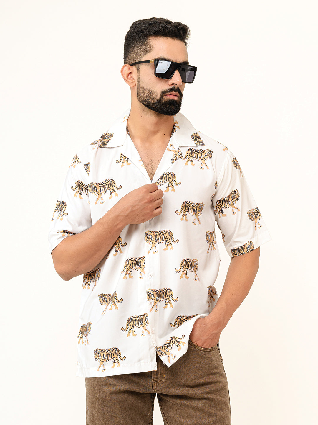 About the product- The White Tiger Printed Oversized Half Sleeves Shirt is made from highly comfortable Crepe fabric that allows movement along with giving a fashionable look!