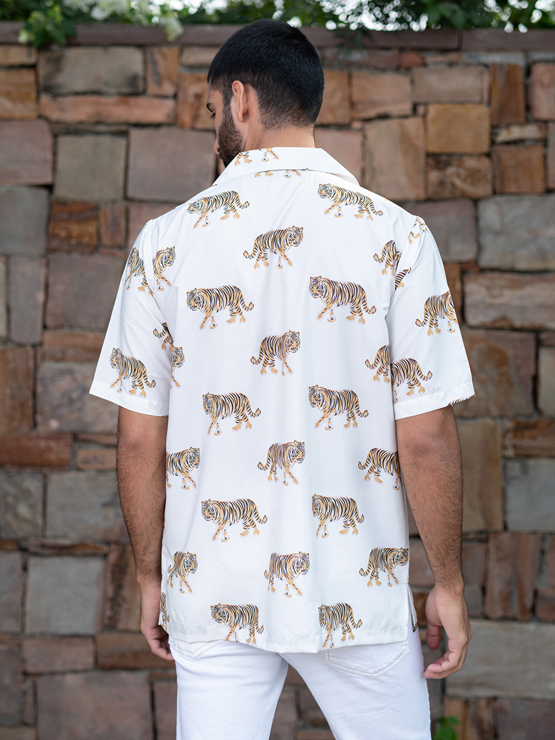Occasion- The White Tiger Printed Oversized Half Sleeves Crepe Shirt is the perfect choice for a semi-formal or casual occasions!