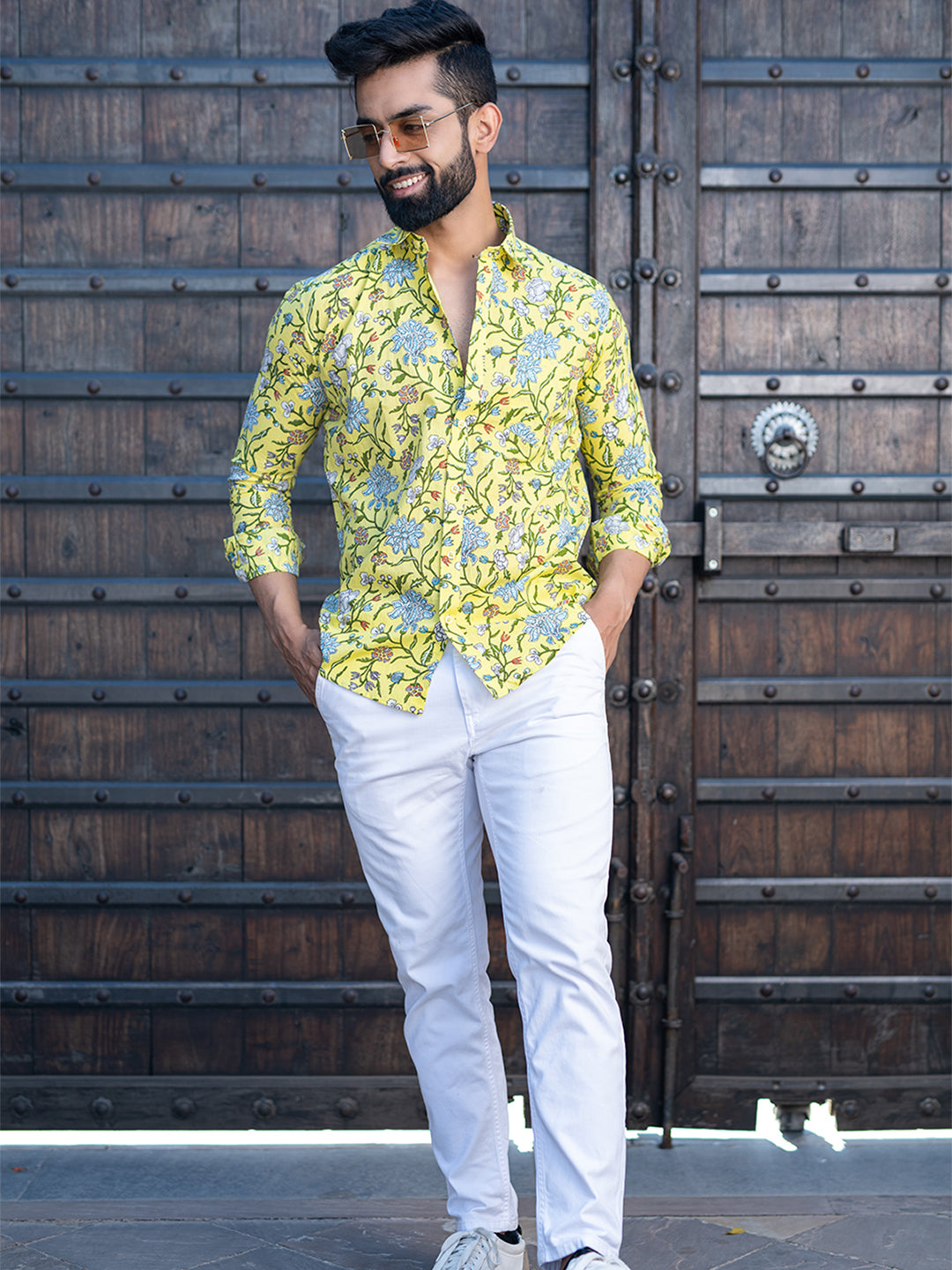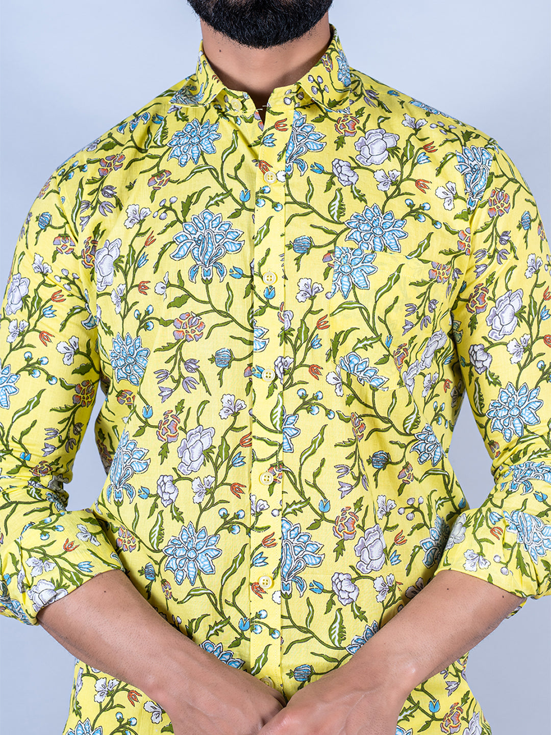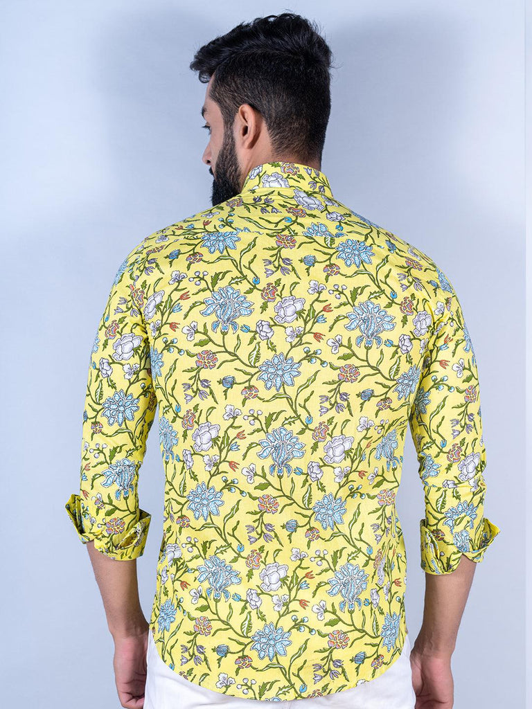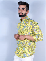 About the product: This yellow floral printed full sleeves cotton shirt is made to make you look smart. This comfortable shirt is a must inside your wardrobe.