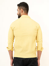 The Yellow Full Sleeve Popcorn Shirt is a stylish and unique addition to your wardrobe. It features a textured popcorn fabric that adds depth and character to your look.