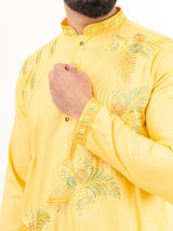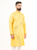 Elevate your festive wardrobe with the Yellow Silk Embroidery Designer Kurta for Men. Crafted with intricate embroidery on luxurious silk fabric, this kurta exudes elegance and charm, making it perfect for special occasions.