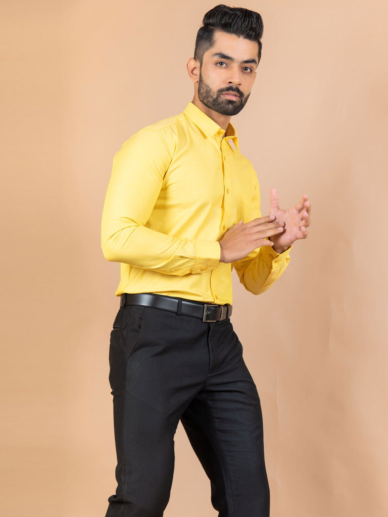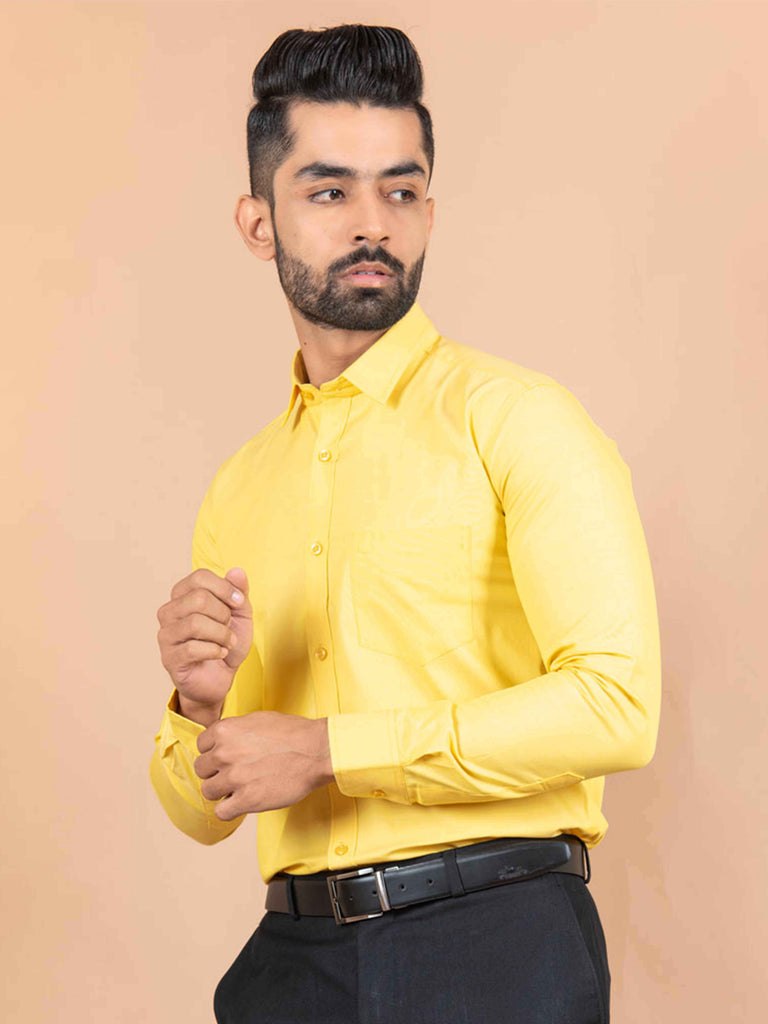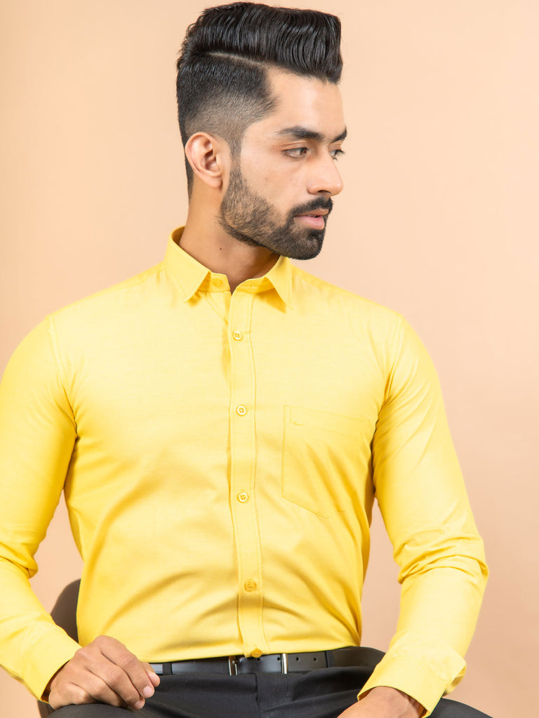 About The Product- Yellow Solid Cotton Shirt Made For Formal Looks, 100% Comfortable, And Feels Soft And Smooth On The Skin.